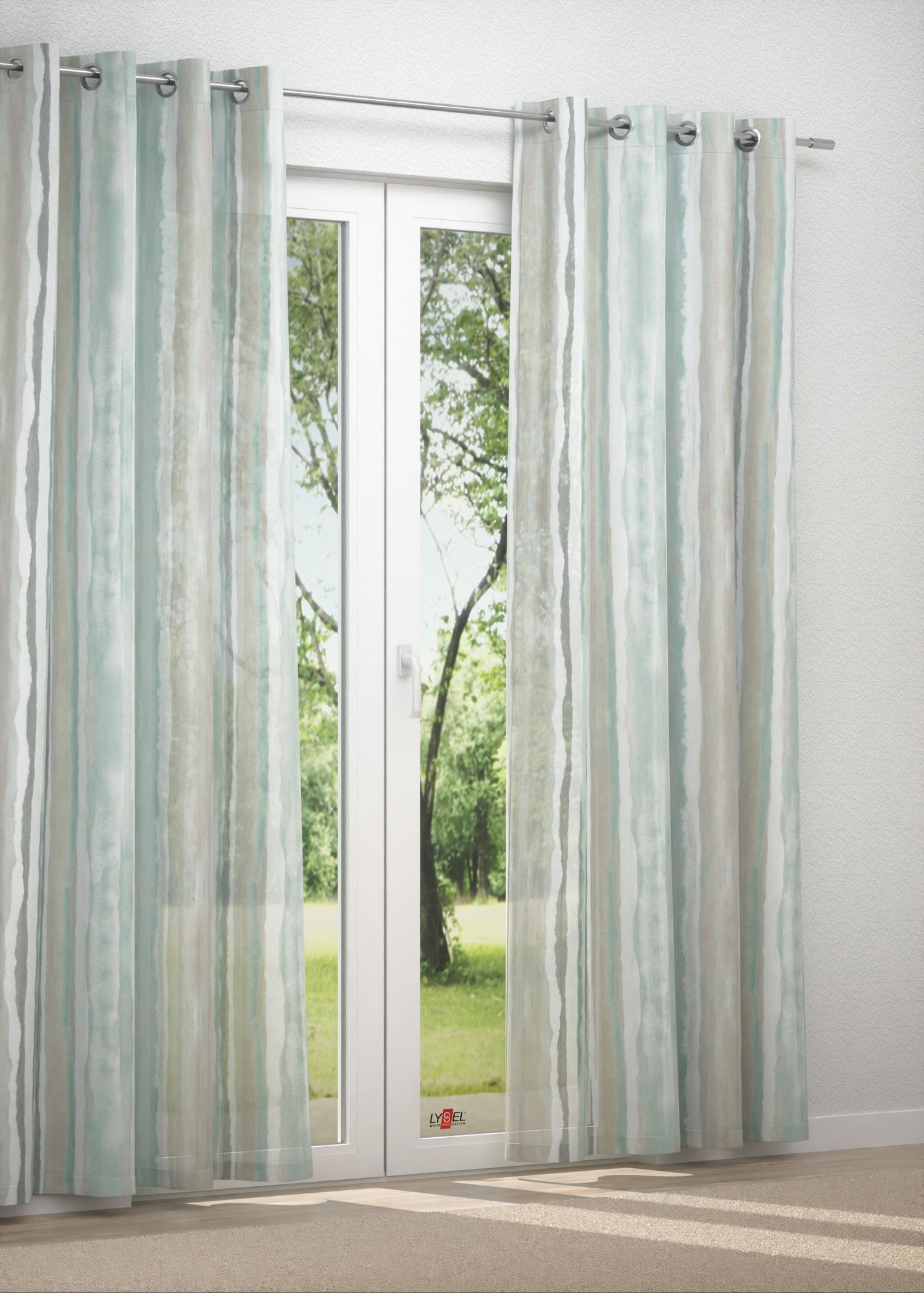 Dieser transparente Stoff wirkt so, als würde er aus Seide bestehen. Zunächst scheint er mit einem klassischen Streifenmuster versehen, dann erschließt sich der Clou des Designs. Harmonisch und fließend heben sich die Übergänge der Längsstreifen farblich voneinander ab. Die Knitteroptik bewirkt eine spürbare Lebendigkeit und eine Deko aus diesem Stoff avanciert zum optischen Highlight des Raumes. Seiten und Abschluss des Stoffes sind gesäumt. Reinigen lässt sich das Polyestergewebe schonend bei 30 Grad.