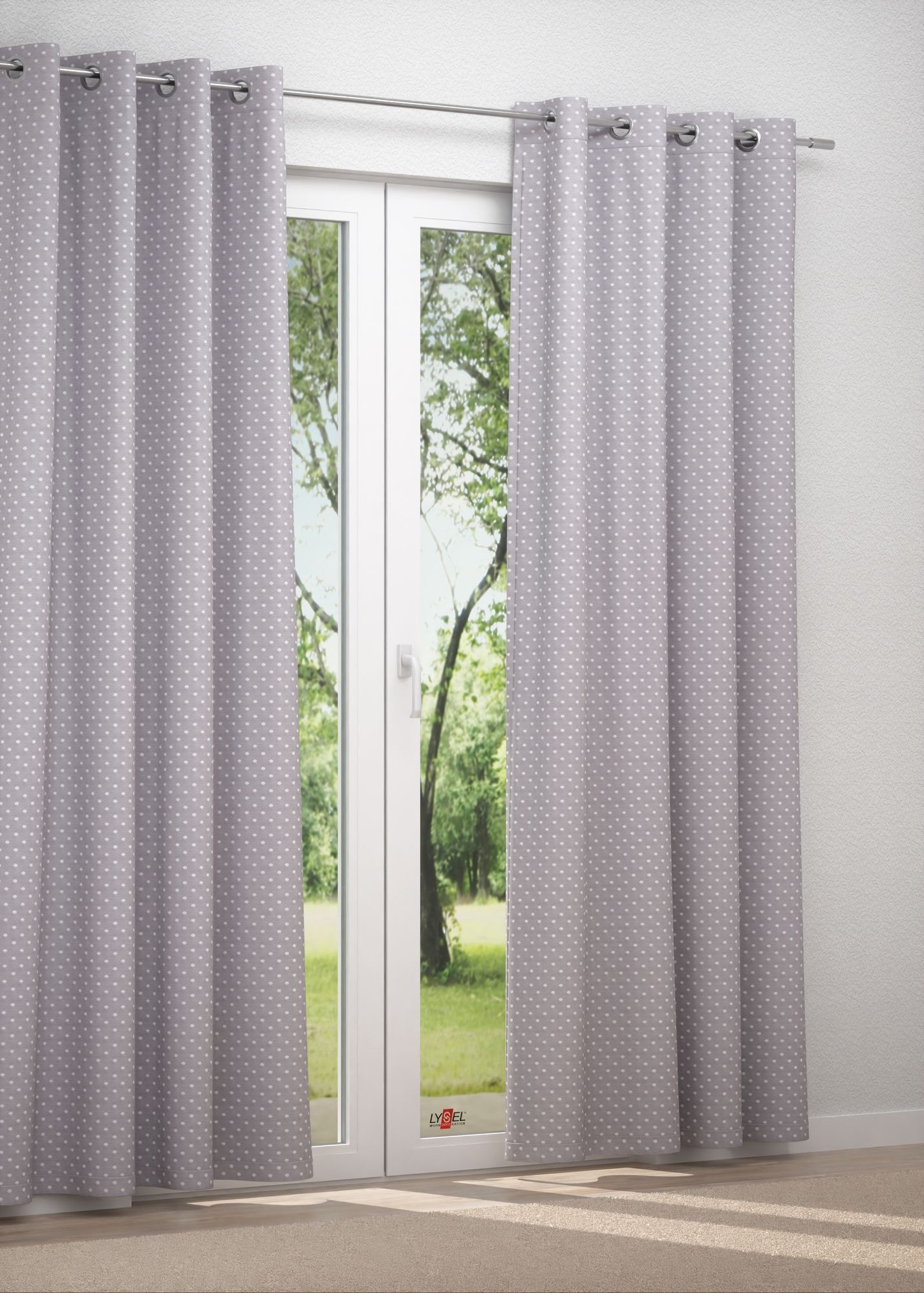 Dieser unifarbene, feine Stoff ist mit silbern schimmernden Punkten verziert und erhält dadurch eine verspielte Eleganz. Die gleichmäßige Anordnung der kleinen Punkte sorgt gleichzeitig für eine ruhige, harmonische Aura. Die Rückseite des lichtdurchlässigen Stoffes stellt das Muster in Negativ-Optik dar, eine schöne Basis für immer wieder neue Looks. Indem Sie mit Abstufungen der Farben spielen und durch unifarbene Deko-Elemente das Muster für sich wirken lassen, schaffen Sie ein einladendes gemütliches Flair. Die gesäumten Seiten und der gesäumte Abschluss unterstreichen die hochwertige Verarbeitung. Das Gewebe besteht zu fast gleichen Teilen aus Polyester und Polyacryl, lässt sich schonend bei 30 Grad reinigen.