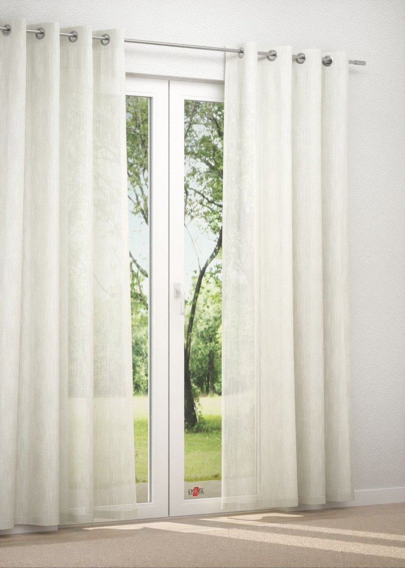 Die feinen, unregelmäßigen Längsstreifen verleihen dem unifarbenen Stoff eine stilvolle Finesse. Das durchsichtige Gewebe besteht zu 100 % aus Polyester und trägt zu einem offenen und freundlichen Ambiente bei. Maßgefertigte Gardinenschals und Raffrollos lassen sich aus diesem Modell ganz einfach fertigen. Geschmackvoll am Fenster drapiert erfüllt dieses Modell vor allem dekorative Zwecke. Räume, deren Fenster mit diesem Stoff dekoriert sind, wirken optisch größer und offener. Bei Bedarf lässt sich dieses Modell schonend bei 30 Grad in der Maschine waschen.