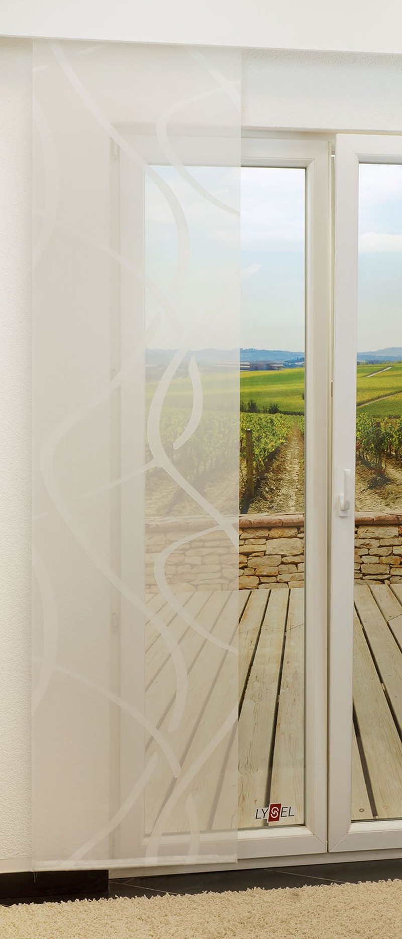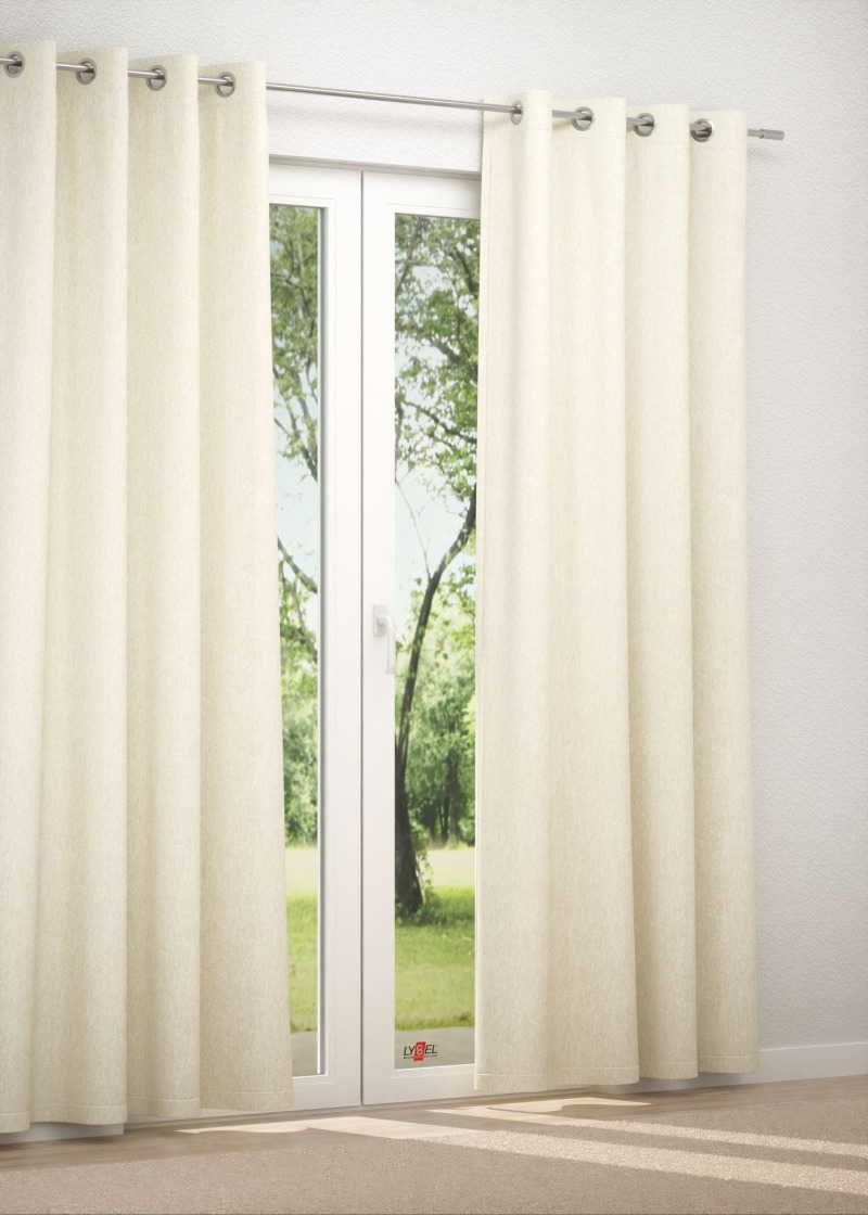 - Ein Ösenschal aus lichtdurchlässigem Stoff, 100% Polyester - individuell nach Ihren Wunschmaßen gefertigt.