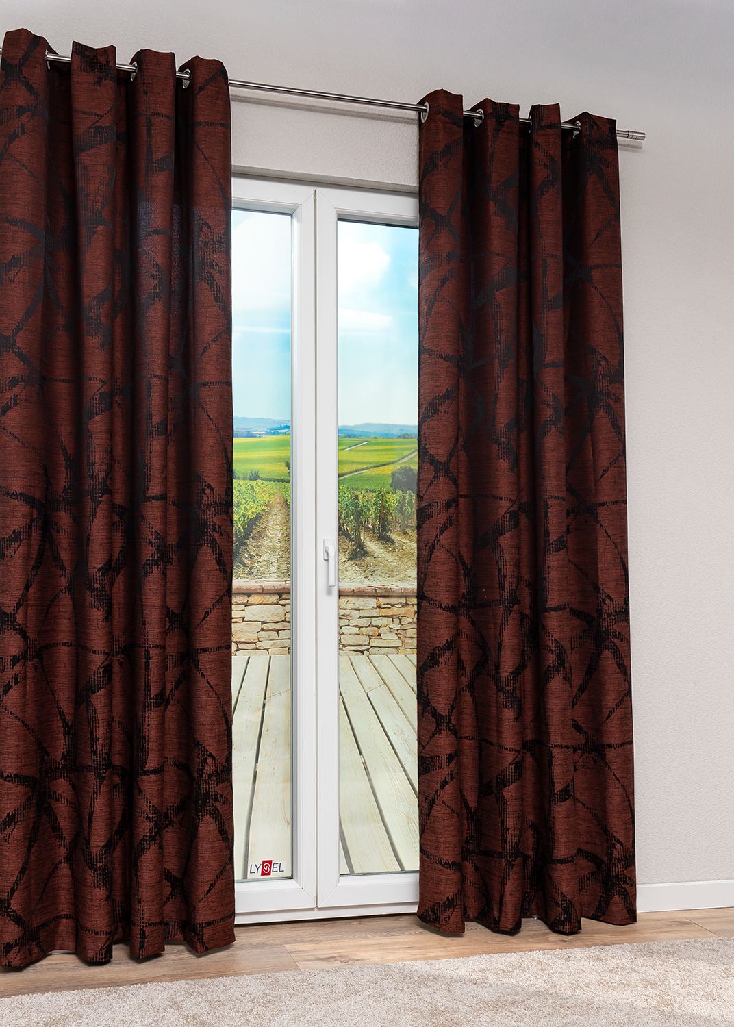 Dieser dekorative Vorhang mit Ösenbefestigung trägt nicht nur zur Verschönerung Ihres Ambientes bei. Er überzeugt auch in praktischer Hinsicht. Blickfang ist ein schimmerndes Muster, das auf den ersten Blick an ein Dickicht aus Dornen erinnert. Bei genauerer Betrachtung entdeckt man jedoch, dass die Struktur des abstrakten Designs abwechslungsreich unterbrochen ist. Dasselbe visuelle Erlebnis bietet sich auch auf der Rückseite, wo das Muster in einer umgekehrten Darstellung erscheint. Der Saum an den Seiten und am Abschluss, die hochwertigen Ösen und der weiche Fall am Fenster ergänzen die attraktive Erscheinung dieses Vorhangs. Der pflegeleichte Fensterschmuck eignet sich sowohl für den Wohn- als auch für den Schlafbereich. Der Polyesterstoff spielt tagsüber effektvoll mit Licht und Schatten und gewährleistet gleichzeitig einen zuverlässigen Sichtschutz. Selbst abends, wenn Sie sich bei künstlicher Beleuchtung entspannen, dürften neugierige Nachbarn hinter dem Fenster lediglich vage Konturen wahrnehmen.