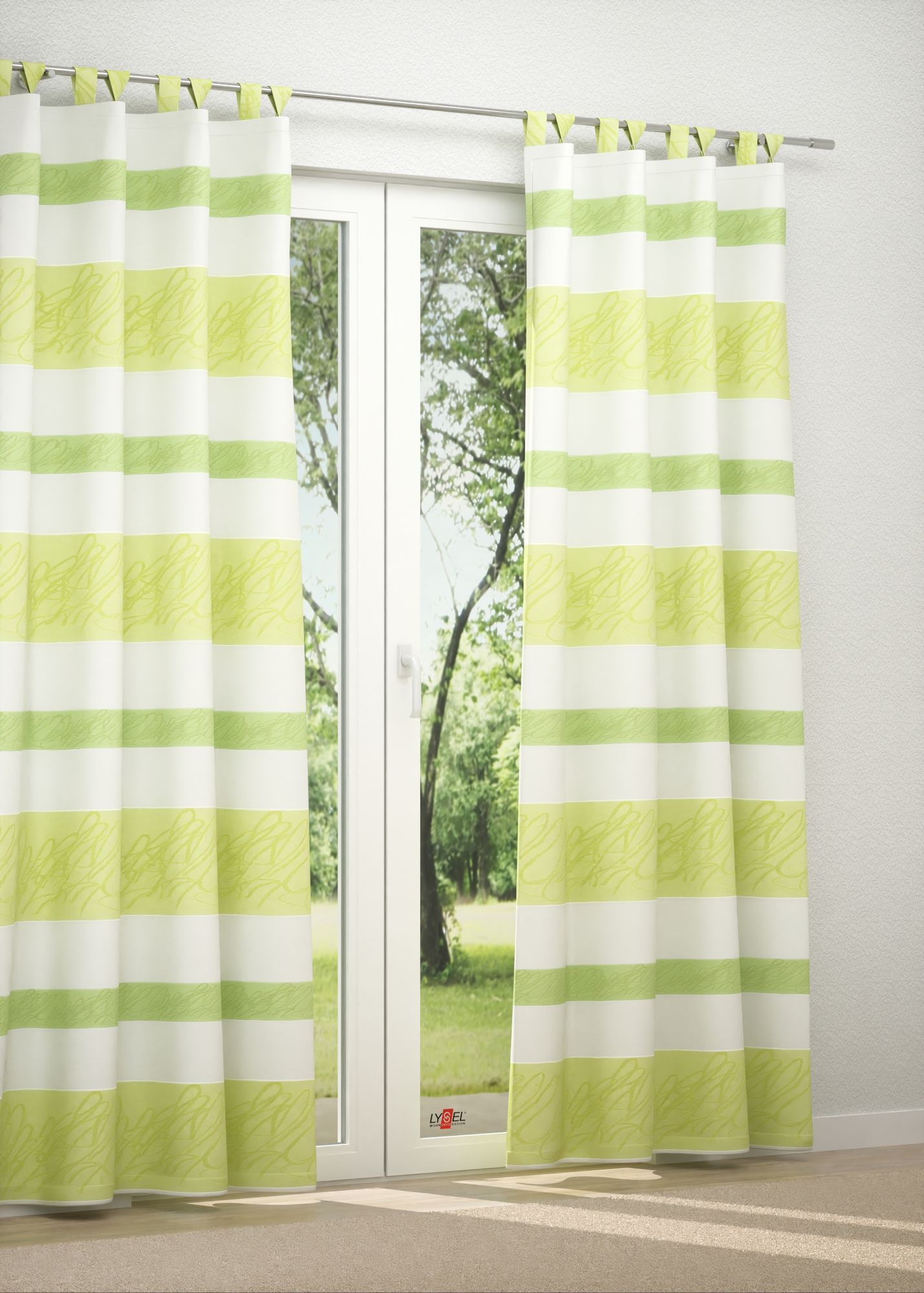 Dieser gestreifte Stoff überzeugt vor allem durch seine abwechslungsreiche Optik und seine vielfältigen Einsatzmöglichkeiten. Die Streifen bewegen sich innerhalb einer Farbfamilie, das Design wirkt harmonisch und stimmig. Dabei sind die farblich intensiveren Flächen noch mit schimmernden, an Arabeske erinnernden, geschwungenen Linien verziert. Das lichtdurchlässige, blickdichte Polyestergewebe können Sie ausserdem schonend bei 30 Grad waschen. Seiten und Abschluss des Stoffes sind gesäumt.