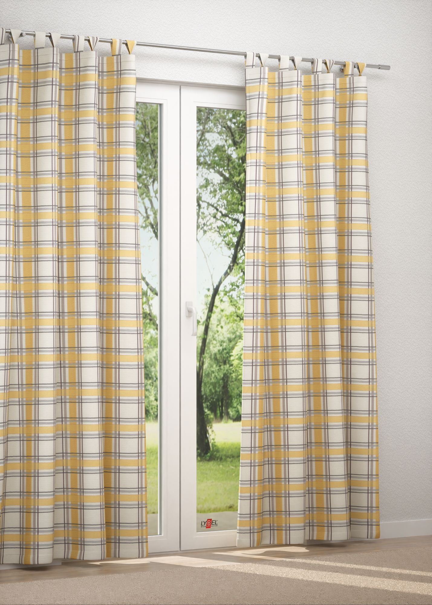 Dieser abwechslungsreich gestaltete, karierte Stoff überzeugt neben seinem Design auch durch seine vielfältigen praktischen Eigenschaften. Seiten und Abschluss sind gesäumt, das Gewebe ist lichtdurchlässig und blickdicht. Eine moderne Note erhält das Modell durch die unterschiedlich großen Streifen und Rechtecke, die vertikal und horizontal übereinandergelegt sind. Der Stoff setzt sich aus Polyester und Polyacryl zusammen und lässt sich schonend bei 30 Grad reinigen.