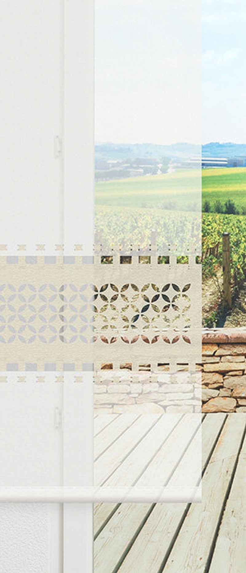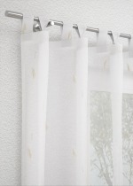 Mit diesem Modell können Sie Einrichtungen hell und freundlich gestalten und haben gleichzeitig eine attraktive, äußerst vielseitige Raumdekoration. Ihre Optik zeichnet sich durch ein mit großen Abständen angelegtes, aber dennoch auffallendes abstraktes Muster aus. Es wirkt, als habe ein Maler hier intuitiv zart schimmernde Pinselstreifen gesetzt, die dem Design eine gewisse Eleganz einhauchen. Dadurch passt er in ein modernes Interieur, gleichzeitig aber auch in klassisch eingerichtete Wohn-, Ess- oder Schlafzimmer. Das an den Seiten und am Abschluss gesäumte Polyestergewebe überzeugt zusätzlich durch seine Funktionalität, auch dank des eingearbeiteten Bleibandes. Der transparente Stoff kann effektvoll mit einfallender Sonne spielen. Ihre vier Wände werden offenen und einladender. Möchten Sie den textilen Raumschmuck reinigen, geht das am besten im Schonwaschgang der Waschmaschine bei 30°C.