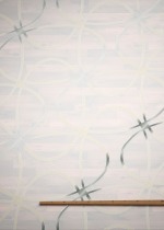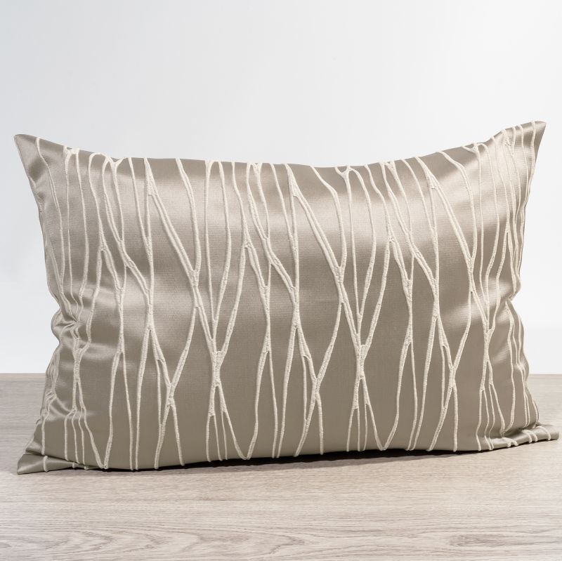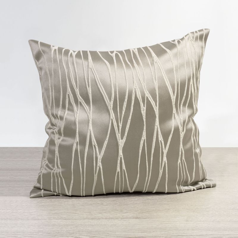 Die in freundlichem Beige gestalteten Linien versprühen in Kombination mit dem reinweißen Grundstoff eine milde Wohnlichkeit. Einen lebendigen, modernen Akzent bilden die Schraffuren in Grau und Schwarz, die wohl das Zentrum der jeweiligen Blüte darstellen sollen. Durch die vorwiegend hellen Farben wirkt die Deko einladend und freundlich, harmoniert mit verwandten Naturtönen und Materialien wie Holz, Bast, Rattan, Leinen, Stein und Schiefer.