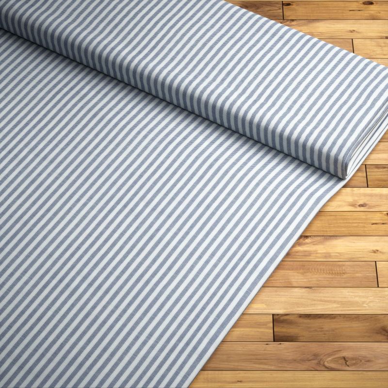Ein Hauch von maritimem Flair kommt mit diesem blau-weiß gestreiften Dekostoff in den Raum. Die Kombination mit zeitlos-eleganten Grautönen und milden Naturfarben bietet sich hier besonders an. Accessoires aus Leinen und Baumwolle, Wohnelemente aus Korb- und Rattangeflecht sowie Accessoires aus Glas und Keramik können die unbeschwerte, luftig-leichte Atmosphäre noch unterstreichen.