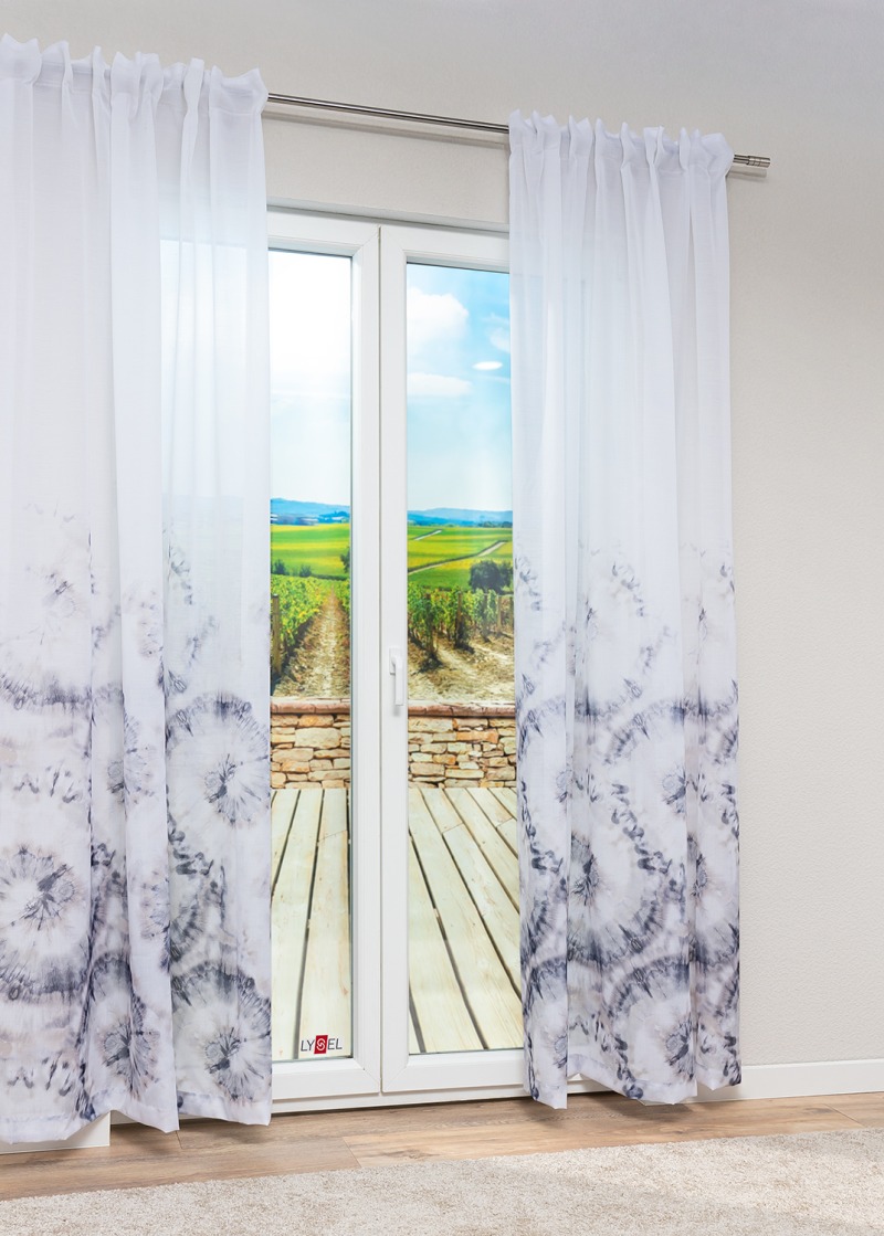 Dieser genauso edel wie robust wirkende Stoff begeistert neben seiner floralen Gestaltung vor allem durch seine vielfältigen Einsatzmöglichkeiten. Die großen, abstrakten Blumengebilde gleichen den Blüten von Löwenzahn oder Dahlien. Dabei bewegt sich das Design stets in einer Farbwelt und beinhaltet vor allem sanfte und zurückhaltende Töne. Die Rückseite zeigt eine Negativ-Optik und kann damit für weitere interessante Effekte sorgen. Die griffige, aufgeworfene Struktur, die in einigen Momenten an ein feines Gittergewebe erinnert, macht diesen lichtdurchlässigen Stoff erst recht einzigartig. Seiten und Abschluss dieses Gewebes aus Polyester und Baumwolle sind gesäumt, bei 30 Grad lässt es sich schonend waschen.