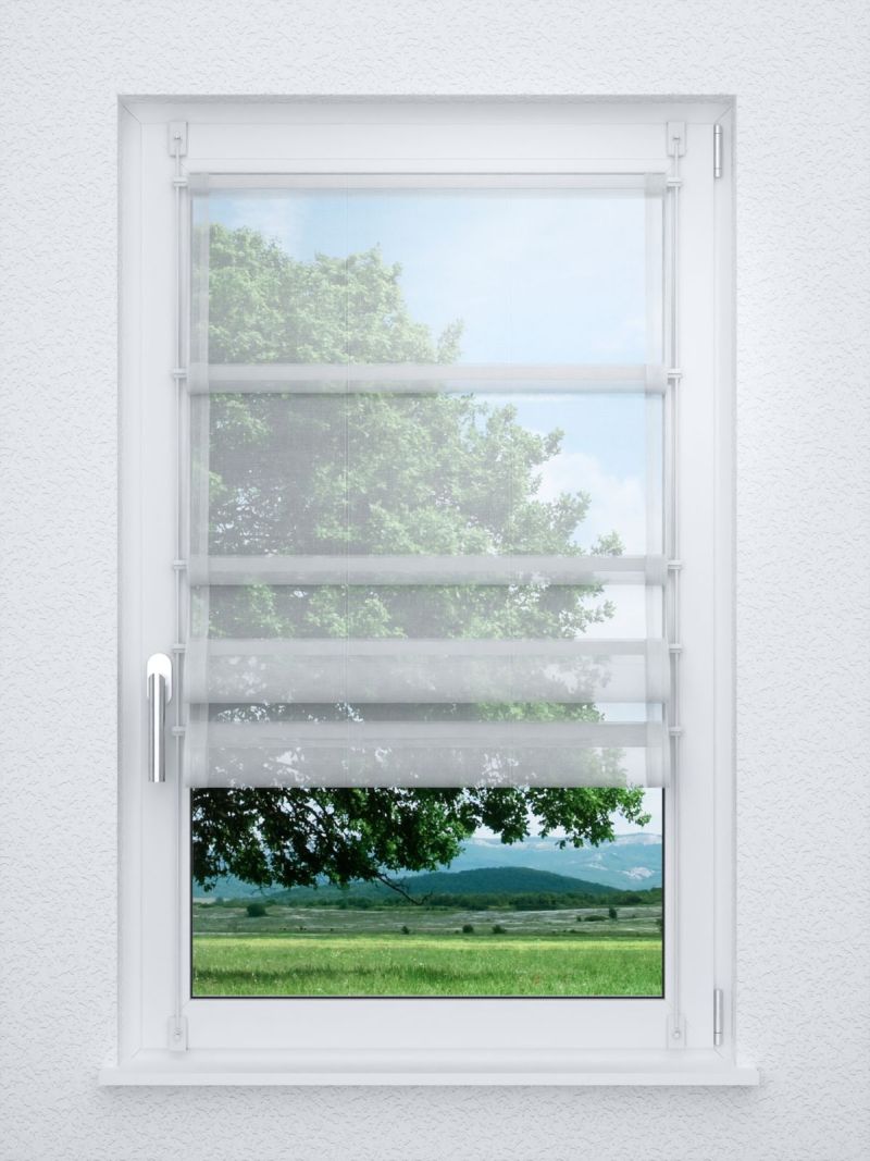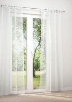 Wird dieses feine Gewebe aus recyceltem Polyester zu einer maßgefertigten Fensterdeko, umschmeichelt der Stoff die Glasfront wie ein zarter Hauch, es scheint ein angenehmer frischer Wind durch den Raum zu wehen. Die in großen Abständen auf dem Stoff angeordneten, parallel verlaufenden Streifenpaare heben sich nur durch die Struktur von diesem ab, farblich sind sie identisch. Unaufgeregt, freundlich und leise wirkt eine Deko aus diesem Stoff, die sich fast wie von selbst in Ihr Interieur einfügt. Nutzen Sie unseren Konfigurator, um Raffrollos und Gardinen nach Maß individuell zusammenstellen. Der durchsichtige Stoff lässt viel Licht ins Zimmer, dieses größer und offener wirken. Bei einem Tischläufer oder einer Tischdecke scheint die Maserung des Tisches bzw. das Design der darunterliegenden Tischdecke wirkungsvoll hindurch. Möchten Sie dennoch lieber selbst kreativ werden, bieten wir dieses Modell auch als Meterware an.