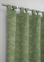Die unterschiedlich hellen Grüntöne werden hier durch beigefarbene Schraffuren weiter aufgelockert. Somit kann die Farbgestaltung die natürliche Optik nochmals unterstreichen. Am besten passen hier unifarbene Accessoires in dunklen Grau- und Grüntönen sowie schöne Holzmöbel. Warm glänzende Metalle lassen das Ambiente lebendiger und wohnlicher wirken.