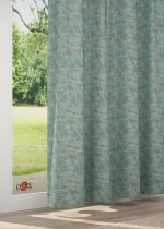 Die unterschiedlichen Schraffuren in Hellblau, Petrol und Grau sorgen für eine abwechslungsreiche Dynamik. Erinnernd an eine Spiegelung im Wasser sind verwandte Blau- und Grautöne hier eine schöne Ergänzung. Akzente setzen Sie mit satten Gelbtönen, rötlichem Holz und Deko-Elementen in Kupfer, Gold oder Messing. Auch leise Puder- und Pastelltöne können den wohnlichen Charakter noch unterstreichen.