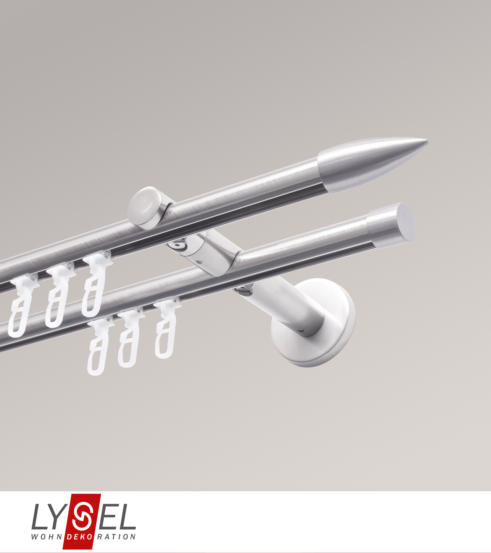 Sie sind hierStartGardinenstange & VorhangstangeLysel - SET Topaz 2-Lauf Doppelträger offen Innenlauf mit Endstücke Patrone #1W
