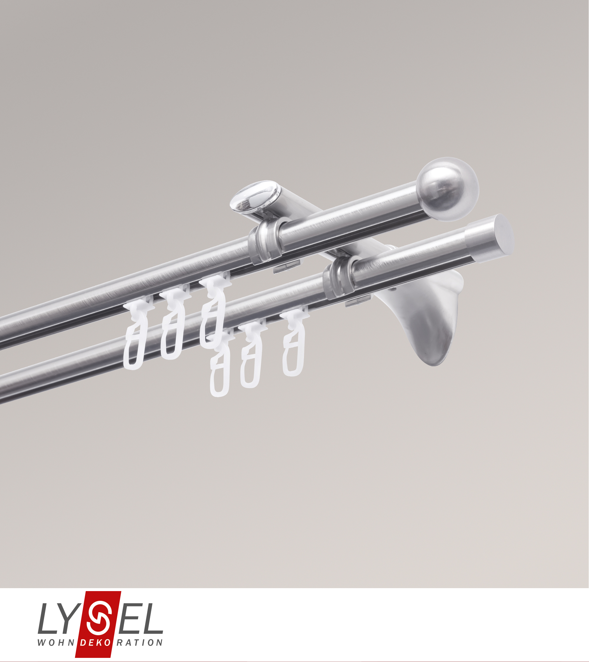 Lysel - SET Topaz 2-Lauf 160cm Universalträger Innenlauf mit Endstücke Kugel in Edelstahl-Optik #1W | Gesamtbewertungen ***** 5 von 5 Sternen | (0 abgegebene Bewertungen)