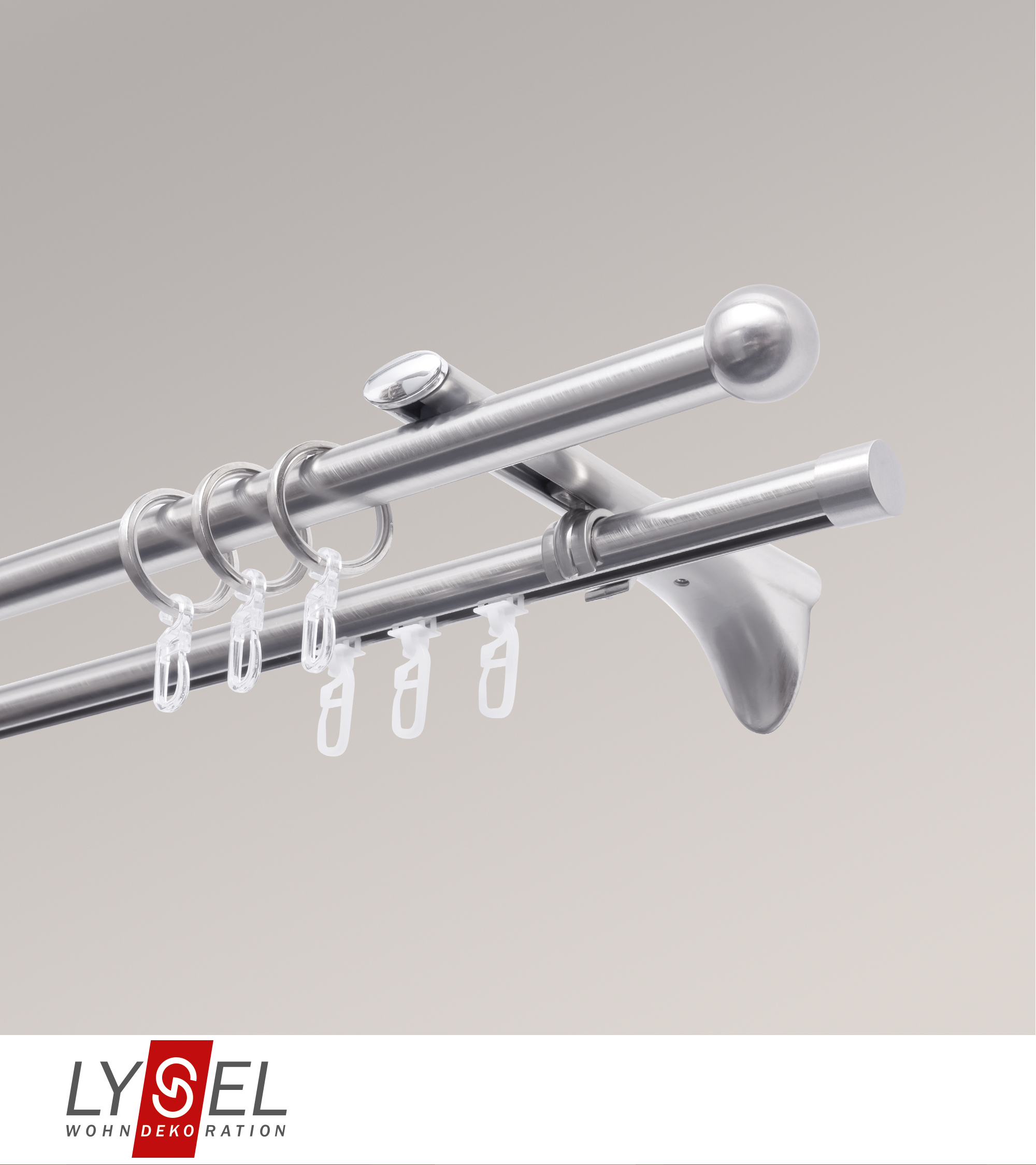 Lysel - SET Topaz Mix 2-Lauf 320cm Universalträger mit Endstücke Kugel in Edelstahl-Optik #1W
