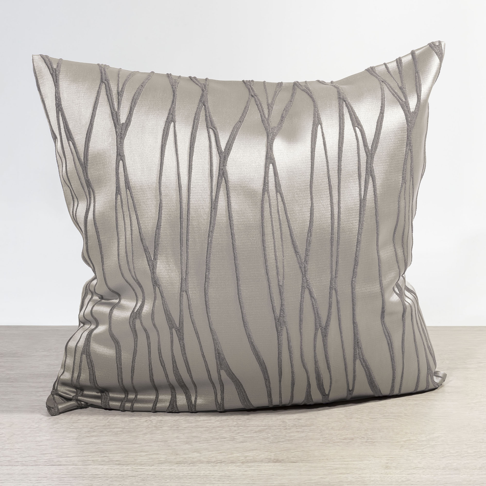 Über die geschmeidig glänzende Oberfläche dieser Kissenhülle laufen verschieden Fäden, die ein dynamisches Muster ergeben und ihr eine lebendige Struktur verleihen. Sie kann an dicht stehende Bäume oder Schilfgras, genauso an Animal Print erinnern kann. Der Glanz und die Struktur verleihen dem Wohnaccessoire das gewisse Etwas. Das abstrakte Muster ist auf Vorder- und Rückseite gleichermaßen vorhanden. Wunderbar können Sie diese Kissenhülle aus 100 % Polyester mit anderen unifarbenen Textilien kombinieren und auf diese Weise eine gemütliche und zugleich stylische Wohlfühloase schaffen. Mit dem Reißverschluss ist eine Kissenfüllung schnell verstaut. Passende Inletts mit Federn und Polyesterwatte finden Sie ebenfalls im Shop.