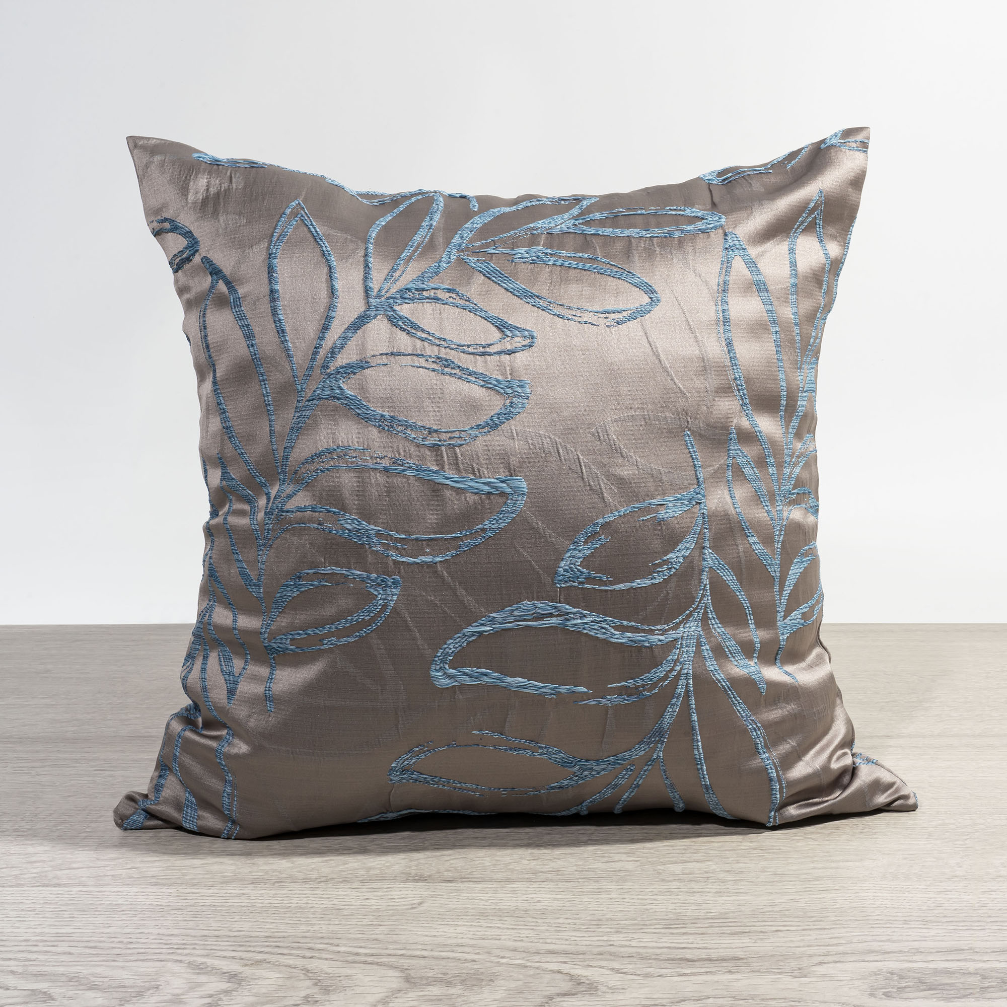 Diese edel schimmernde Kissenhülle ist mit einem floralen Muster verziert. Fäden bilden große Blätterranken, die den hübschen Stoff zieren und dadurch eine gewisse Struktur erkennen lassen. Je nach Modell fügen sich die Blätter harmonisch ein oder sorgen für kontrastreiche und eindrucksvolle Farbakzente. Bei dieser Kissenhülle sind Vorder- und Rückseite identisch. Durch den Reißverschluss lässt sich eine Kissenfüllung schnell verstauen. Passende Inletts mit Federn und Polyesterwatte finden Sie separat im Shop. Accessoires, welche das von der Natur inspirierte Design aufgreifen, lassen sich dazu toll kombinieren, zum Beispiel die Materialien Wolle, Holz, Leinen, Rattan sowie viele Zimmerpflanzen.