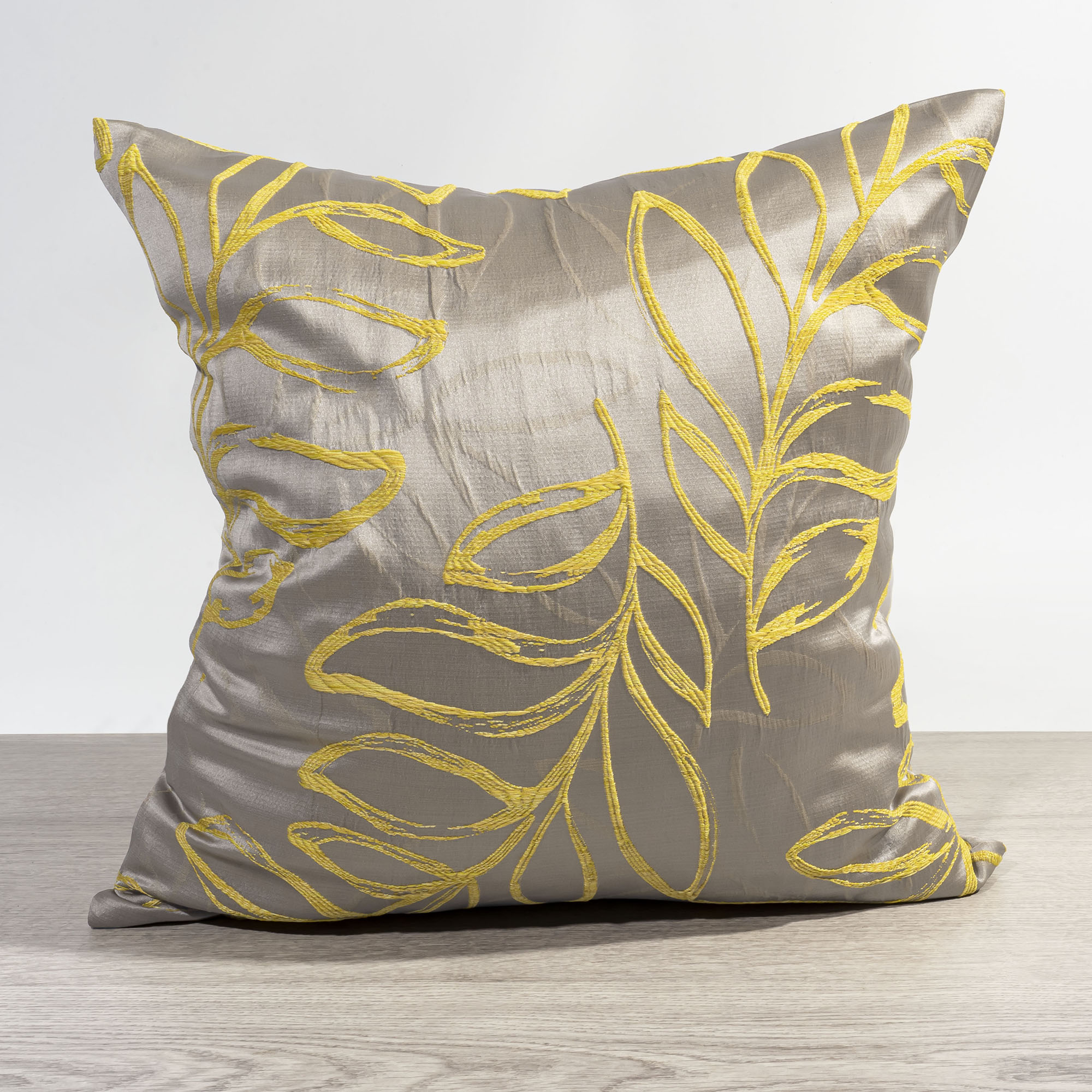Diese edel schimmernde Kissenhülle ist mit einem floralen Muster verziert. Fäden bilden große Blätterranken, die den hübschen Stoff zieren und dadurch eine gewisse Struktur erkennen lassen. Je nach Modell fügen sich die Blätter harmonisch ein oder sorgen für kontrastreiche und eindrucksvolle Farbakzente. Bei dieser Kissenhülle sind Vorder- und Rückseite identisch. Durch den Reißverschluss lässt sich eine Kissenfüllung schnell verstauen. Passende Inletts mit Federn und Polyesterwatte finden Sie separat im Shop. Accessoires, welche das von der Natur inspirierte Design aufgreifen, lassen sich dazu toll kombinieren, zum Beispiel die Materialien Wolle, Holz, Leinen, Rattan sowie viele Zimmerpflanzen.