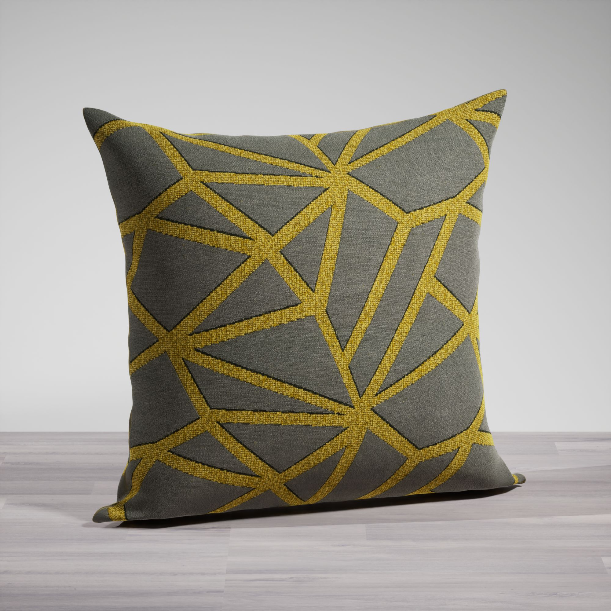 Die Basis dieser modern und abstrakt gestalteten Kissenhülle bildet ein warmer Grauton, von dem sich das satte Gelb, das an Senfgelb erinnert, wirkungsvoll abhebt. Die beiden warmen Farben strahlen eine moderne Gemütlichkeit aus; durch den starken Kontrast ergibt sich zudem ein lebendiger, fast dreidimensionaler Effekt. Kombinieren Sie hierzu verschiedene Grautöne, außerdem Accessoires in warmen Metallictönen. Akzente setzen Sie mit Anthrazit, Nachtblau und Violett.