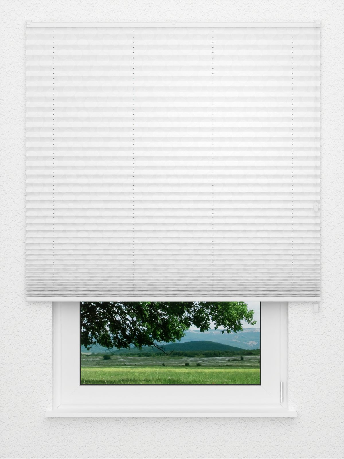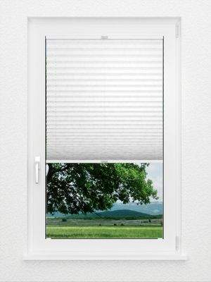 Zarte Kreise dekorieren den gesamten feinen Stoff des Plissees. Der besondere Reiz liegt in den filigranen, schimmernden Kreislinien, aus welchen sich die Formen zusammensetzen. Diese ergeben größere und kleinere Kreise, die Verspieltheit und Eleganz geschickt vereinen. Auf eine gewisse Weise wirkt die Anordnung gleichförmig, bringt Dynamik und Harmonie zum Ausdruck. Die in sich geschlossenen Formen können viele Wohnumgebungen bereichern, ob klassisch oder modern. Der lichtdurchlässige Stoff des Plissees sorgt tagsüber für eine helle und offene Atmosphäre, zudem bietet er stets einen guten Sichtschutz. Um die Oberfläche von Schmutz zu befreien, wischen Sie sie mit einem feuchten Tuch ab. Mit dem gemusterten Plissee in Reinweiß erhält das Ambiente eine verspielte Eleganz. Stilvoll und fein wirken die schimmernden Kreise, der Stoff versprüht Luftigkeit und Leichtigkeit. Ein unbeschwertes, erfrischendes Flair erfüllt den Raum. Mit verschiedenen Grautönen betonen Sie den reduzierten, modernen Charakter, mit warmen Erdfarben betten Sie das Design in eine wohnliche und gemütliche Umgebung ein.