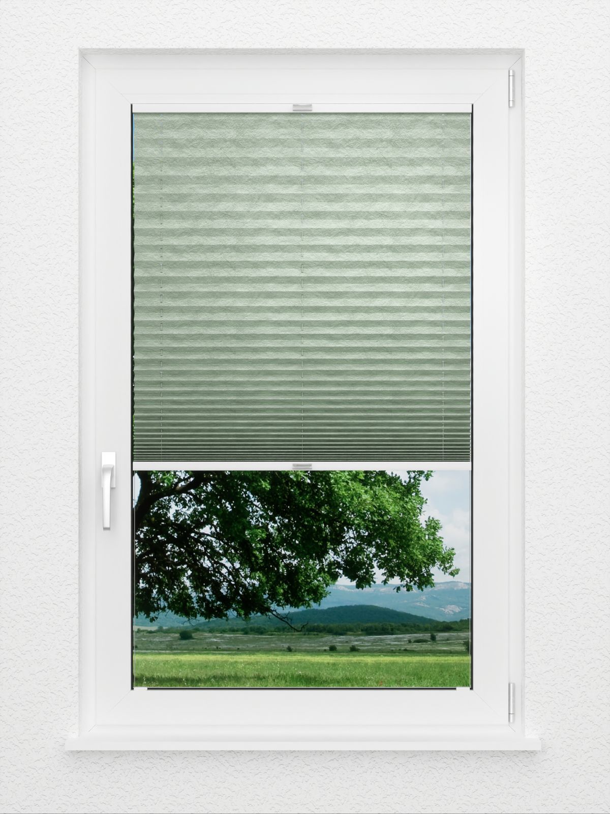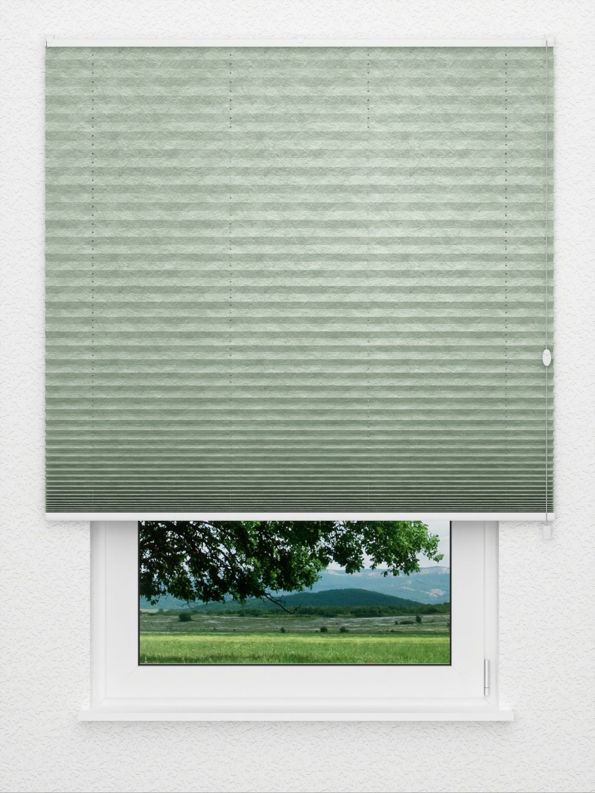 Unaufdringlich schmückt dieser vliesartige Plisseestoff Ihre Fenster einzeln oder in Kombination mit der mit Blüten und Zweigen bedruckten Variante desselben Stoffes. Mit seiner Verwendung können Sie die Raumgestaltung gerade in großen Räumen, in denen das Blütenmuster der verwandten Stoffgruppe zum Einsatz kommen soll, etwas ruhiger halten. Auch einzeln präsentiert sich dieser Plisseestoff als unaufgeregte Fensterdekoration, die das Licht sanft filtert und etwas streut, ohne den Raum dabei merklich zu verdunkeln. Der Stoff ist für den Einsatz in Feuchträumen geeignet und kann bei Verschmutzung per Hand gewaschen werden. Für eine frische belebende Stimmung im Raum sorgt dieses Plissee in Minzgrün, das durch seine pastellige Tönung ein leichtes unbekümmertes Flair am Fenster bewirkt. Verschiedene helle Naturtöne lassen sich ebenso gut dazu kombinieren wie Nuancen in Braun oder Metallic.