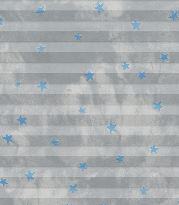 Ein verspieltes Sternendesign auf wolkenartigem Hintergrund macht diesen Faltstore zu einem Blickfang in jedem Schlaf- und Kinderzimmer. Für einen Einsatz in diesen Räumen spricht nicht zuletzt die perlreflexbeschichtete Rückseite. Licht- und Wärmestrahlung werden dadurch gut reflektiert. Sie brauchen aber keine Angst zu haben: Licht gelangt ausreichend durchs Fenster, um ein freundliches Raumklima zu erzeugen. Blicke aus der Nachbarschaft kann das Gewebe gekonnt verhindern, im Wohnzimmer wie in Küche oder Bad. Hier kommt die Feuchtraumeignung des umweltfreundlichen Faltstores zum Tragen. Zum Abschirmen von Bildschirmarbeitsplätzen kann es ebenfalls eingesetzt werden. Ein zusätzlicher Vorteil besteht darin, dass der Polyesterstoff besonders pflegeleicht ist. Verschmutzungen können Sie in milder Seifenlauge auswaschen.
