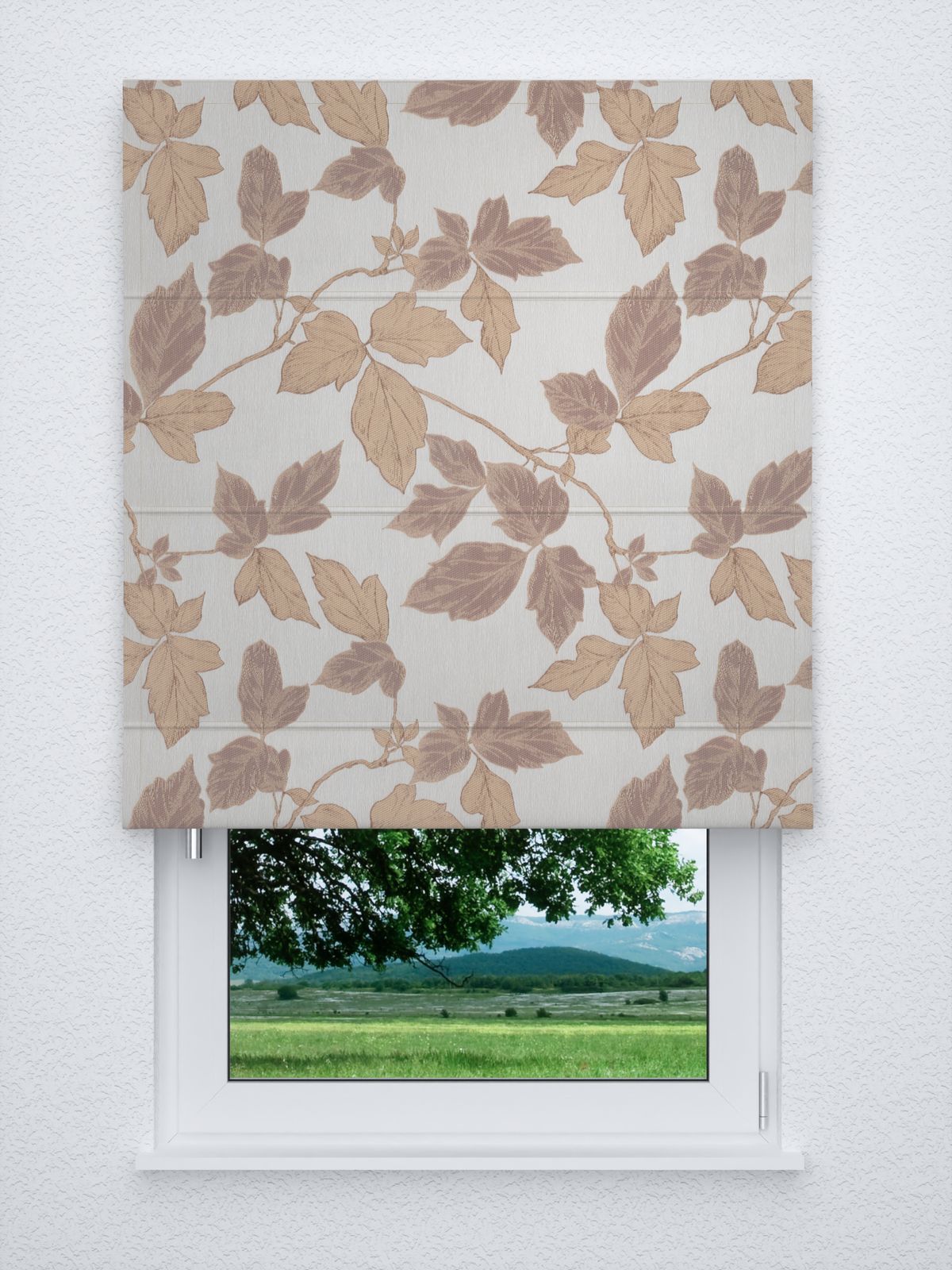 Die in dunklem Rotbraun und hellem Orange gestalteten Blätter heben sich eindrucksvoll von dem geschmeidigen, in einem sehr leichten Naturton gehaltenen Stoff ab. Die warmen Farben wirken weniger leuchtend, vielmehr warm, gediegen und behaglich, eignen sich wunderbar für die Gestaltung des Wohnbereiches. Mildes Graubeige oder helle Sandfarben können hier eine schöne Ergänzung sein. Dunkle Grüntöne greifen das Naturmotiv ebenfalls auf.