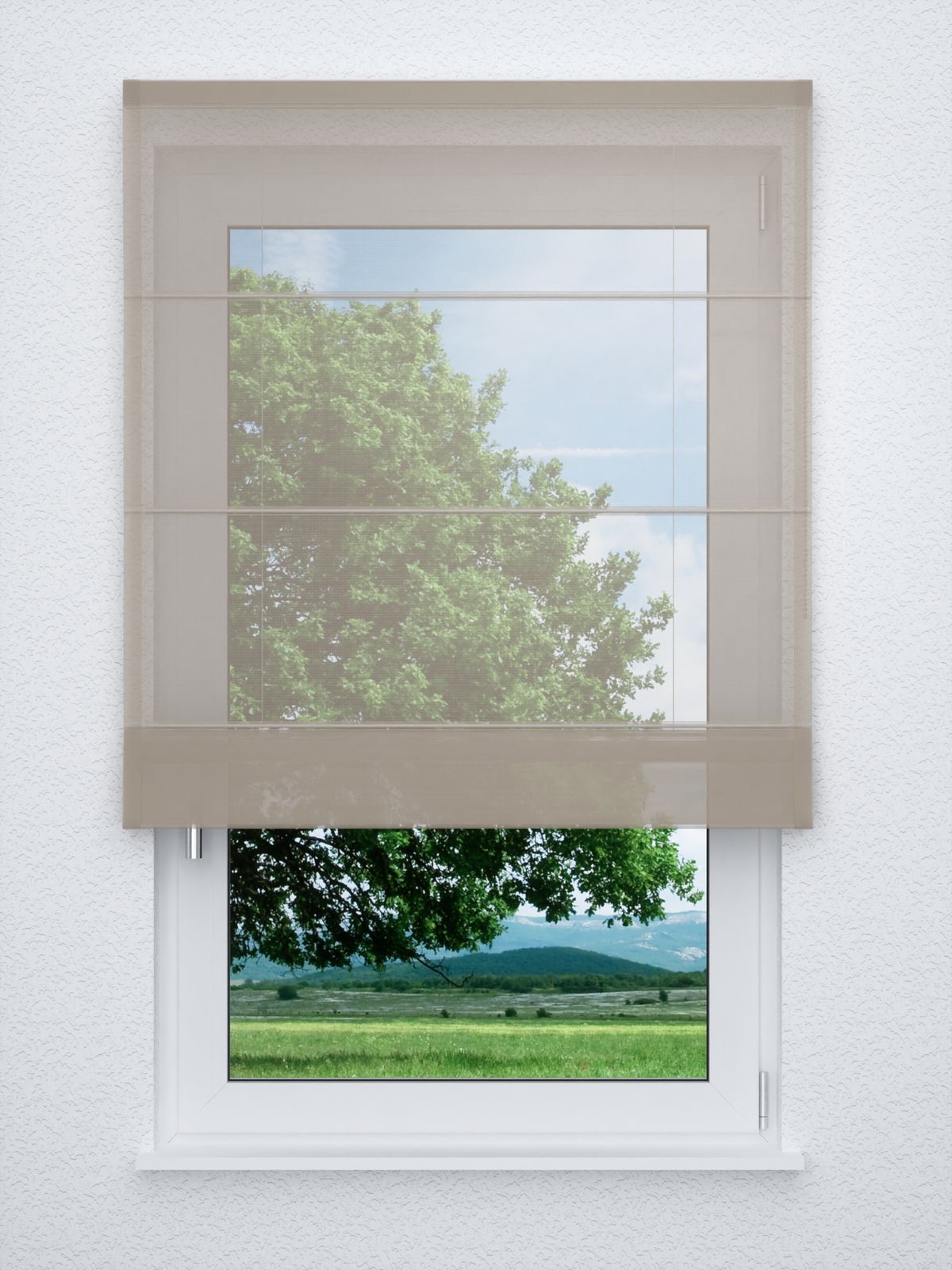 - Ein Raffrollo classic aus transparentem Stoff, 100% Polyester - individuell nach Ihren Wunschmaßen gefertigt. Geliefert wird der Artikel inklusive Befestigungsmaterial.