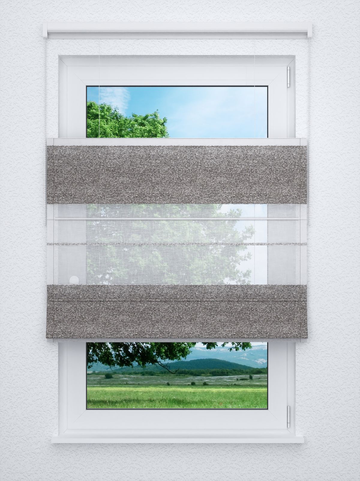 - Ein Raffrollo professional aus transparentem Stoff, 100% Polyester - individuell nach Ihren Wunschmaßen gefertigt. Geliefert wird der Artikel inklusive Befestigungsmaterial.