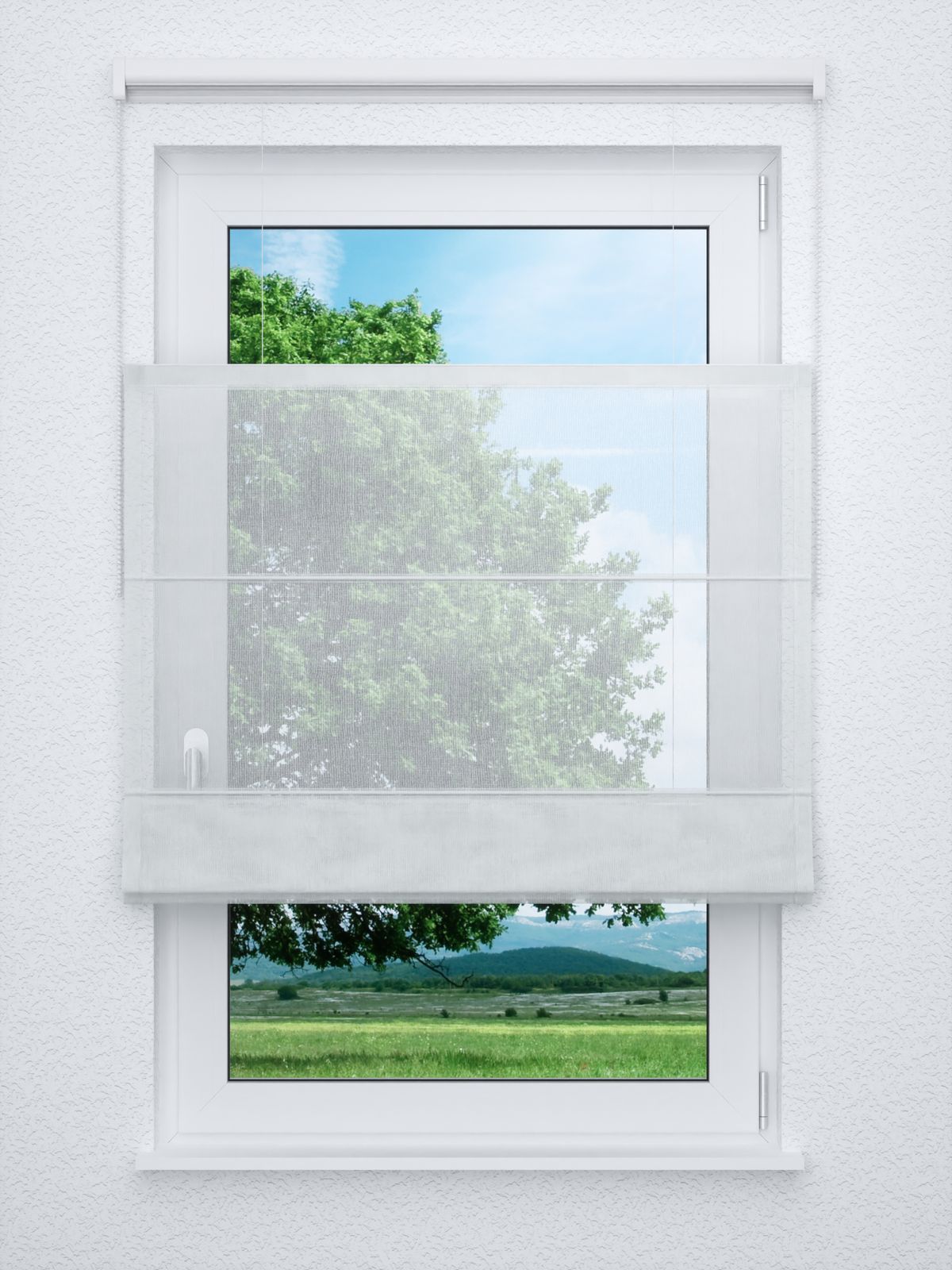 - Ein Raffrollo professional aus transparentem Stoff, 100% Polyester - individuell nach Ihren Wunschmaßen gefertigt. Geliefert wird der Artikel inklusive Befestigungsmaterial.