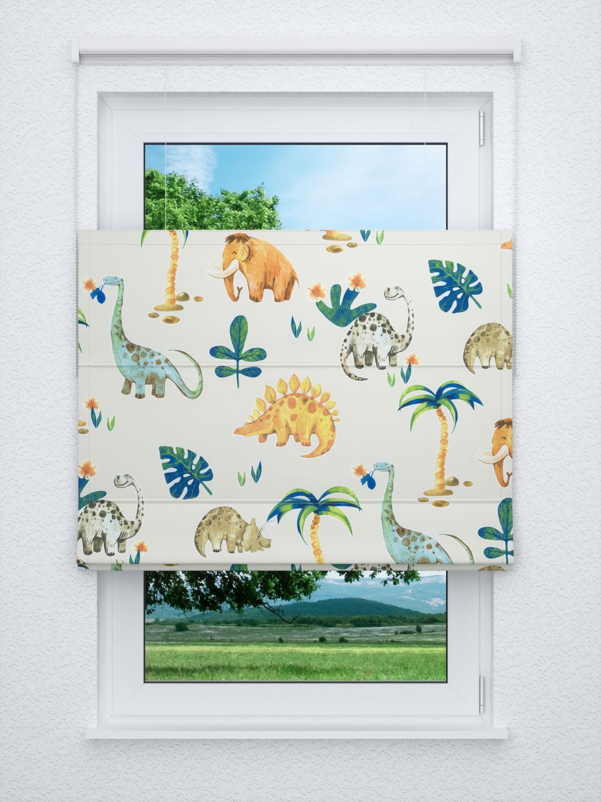 Eine Reise in eine Zeit vor Millionen Jahren. Dieser Stoff zeigt eine fantastisch-bunte Haminasaurierwelt, die Ihr Kind ganz spielerisch an die unvergesslichen, imposanten Tiere heranführt. Die Fleisch- und Pflanzenfresser lächeln leicht und der Langhals-Saurier lässt sich seine Blätter schmecken. Die Palmen und die anderen Pflanzengewächse lassen das Design zusammen mit dem hellen Hintergrund beinahe tropisch aussehen. Fantasievoll und fröhlich wirkt es insgesamt, die bunten Farben sorgen direkt für gute Laune. Da der Stoff auch als Meterware erhältlich ist, können Sie daraus auch selbst individuelle Accessoires für Ihr Zuhause schneidern. Für eine Fensterdeko nach Maß, etwa einen Gardinenschal oder ein Raffrollo, nutzen Sie den Konfigurator. Das glatte, lichtdurchlässige Polyestergewebe mit Transferdruck ist lichtdurchlässig, sorgt für ein helles und freundliches Ambiente. Gleichzeitig bleibt die Privatsphäre stets gewahrt.