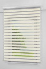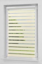 Die Streifen dieser Variante präsentiert sich in sanftem Perlweiß. Offen-warme wie natürliche Wohnstile werden hiermit gleichermaßen gut bedient.