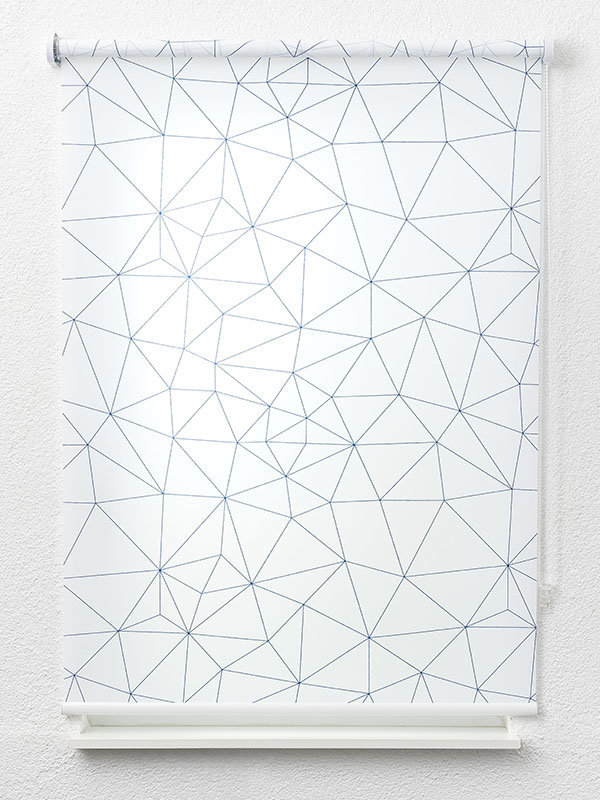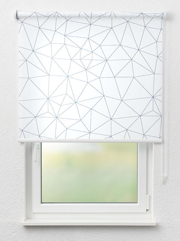 Bei diesem Blick zum Fenster kommt garantiert keine Langeweile mehr auf. Der helle halbtransparente Rollostoff wirkt freundlich und lebendig. Dieser Eindruck wird durch das abstrakte geometrische Muster aus unregelmäßigen Dreiecken unterstützt. Gedanken an Prismen oder Spinnennetze bieten der Phantasie jede Menge Spielraum. Das Fenster erscheint hell und freundlich. Zudem lässt der Stoff das Sonnenlicht weiterhin gedämpft ins Zimmer fallen. Der Behang lässt sich vielseitig einsetzen. Er kann in Wohnzimmern ebenso stimmig integriert werden, wie sich in Küchen oder Jugendzimmern ein gelungenes Ambiente schaffen lässt. Kombinieren Sie mit verschiedenen Blautönen, um die Farbwirkung zu intensivieren. Mit Weiß oder Grau schaffen Sie einen dezenten Gegenpol.