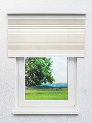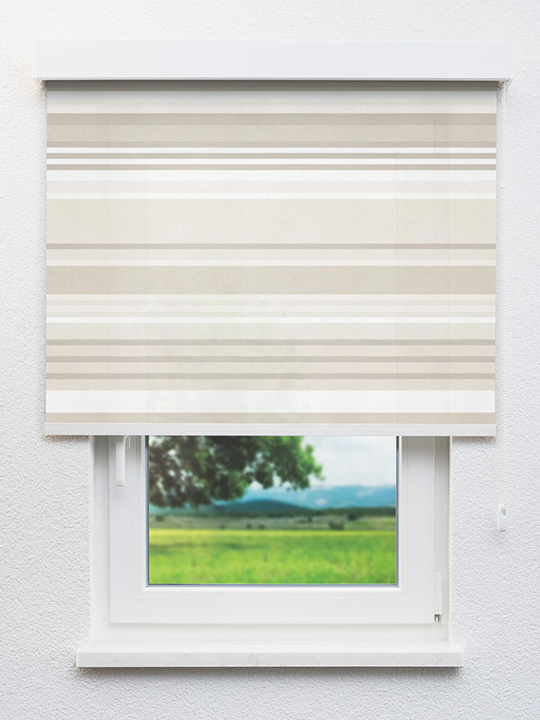 Mit diesem Rollo in klassischem Streifenmuster können Sie optisch für Dynamik und Bewegung sorgen. Dazu trägt mitunter die unterschiedliche Breite der Streifen und die farbliche Gestaltung in Braun, Creme und Silber bei, die das Muster harmonisch in Szene setzt. Auf der Rückseite ist der Polyesterstoff mit einer weißen Gummi-Beschichtung überzogen. Somit ist er komplett lichtundurchlässig und es kommen auch keine neugierigen Blicke mehr hindurch. Das sogenannte Blackout-Rollo kann also den Raum verdunkeln und ist besonders für Schlaf- und Kinderzimmer eine Empfehlung. Unabhängig von der Helligkeit draußen bieten diese stets einen lauschigen Rückzugsort, der zum Entspannen und Träumen einlädt. Auch Schichtarbeiter profitieren von dem Behang und können damit im Nu den Tag zur Nacht machen. An dieser Stelle ist auch die Eignung als Blendschutz für den Bildschirmarbeitsplatz erwähnenswert. Mit diesem Rollo am Fenster gehören Spiegelungen und Reflexionen auf dem Monitor der Vergangenheit an. In Bad und Küche stellt das Material seine Unempfindlichkeit gegenüber hoher Luftfeuchtigkeit und Wärme unter Beweis. Nach Maß gefertigt sitzt das Rollo passgenau am Fenster.