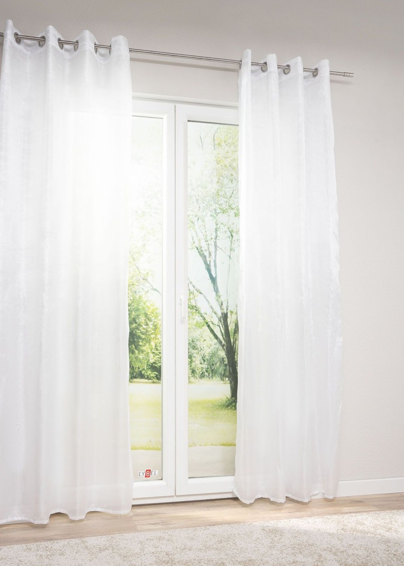 - Eine transparente Scheibengardine aus 100% Polyester.