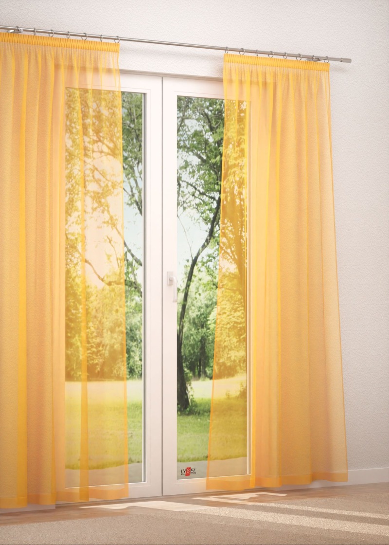 - Eine transparente Scheibengardine aus 100% Polyester.
