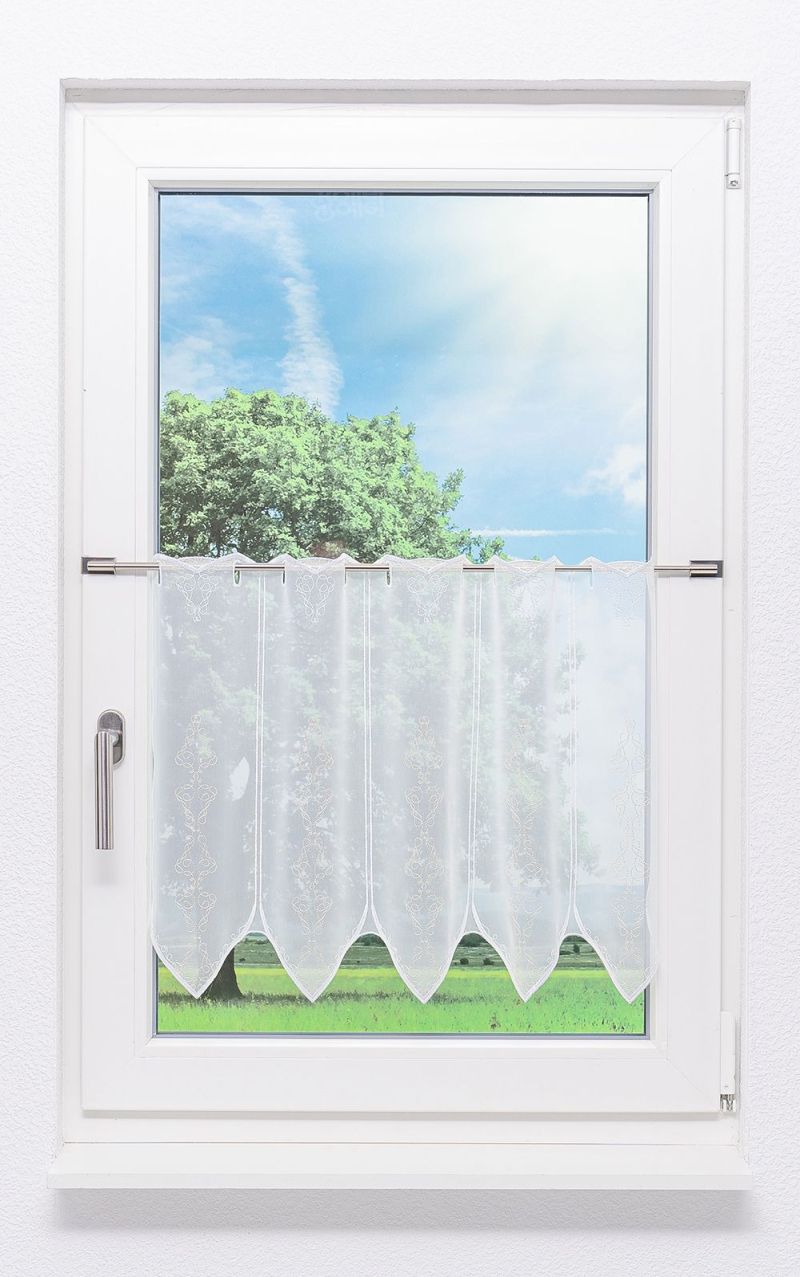 Ein Hauch von Leichtigkeit schwingt bei dieser zarten Scheibengardine definitiv mit. Sie besteht aus 100% Polyester, ist Transparent, aber dennoch einen Blick wert. Das feine, elegante und filigrane Muster wird von leeren Flächen aufgelockert. Ein wirklich interessanter Look, der besonders gut in jeden Raum passt.