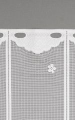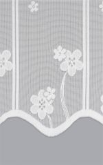 Die weiße Gardine, die am unteren, wellenförmigen Abschluss mit zwei weißen Blüten verziert ist, bringt eine angenehme Frische und durch die glitzernden Steinchen eine gewisse Eleganz in den Raum. Diese Bistrogardine eröffnet einen immensen Gestaltungsspielraum und kann sowohl mit warmen Erdtönen als auch mit aufregenden Knallfarben in Szene gesetzt werden. Mit dem floralen Design harmonieren liebliche Pastelltöne wie Hellgelb, Himmelblau, Rosé, Mint und Mauve besonders gut.