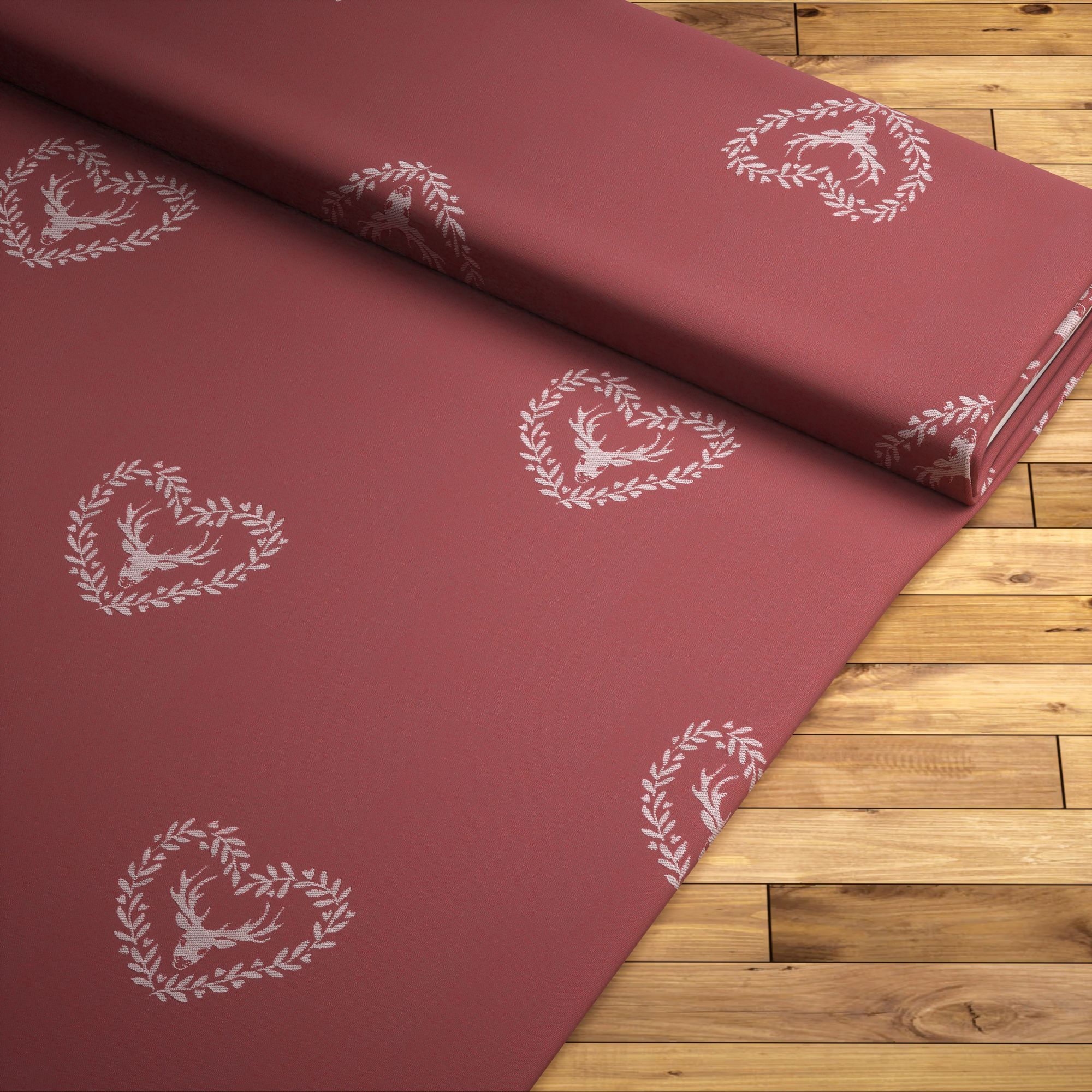 Dieser Dekostoff mit aufgestickten Details lässt sich für die verschiedensten Arten von Heimtextilien nutzen. Daraus können neben Kissenhüllen und Tischdecken auch Raffrollos und Gardinenschals gefertigt werden. Das Muster setzt sich aus Stickereien zusammen: Vom Landhausstil inspirierte Blätterranken bilden die Umrahmung eines stilisiert gestalteten Hirschkopfes mit Geweih. Auf der Rückseite ist das Design in Negativ-Optik zu sehen. Somit können Sie Tischdecke oder Kissenhülle je nach Belieben auf die gerade favorisierte Seite drehen. Soll der lichtdurchlässige Dekostoff Basis für eine Fensterdeko sein, gelingt ihm die perfekte Balance aus Helligkeit und Sichtschutz. Während selbst bei geschlossenem Behang Tageslicht gemildert und gedämpft in den Raum fällt, bleiben Sie durch den Sichtschutz tagsüber wie nachts zuverlässig vor neugierigen Blicken bewahrt.