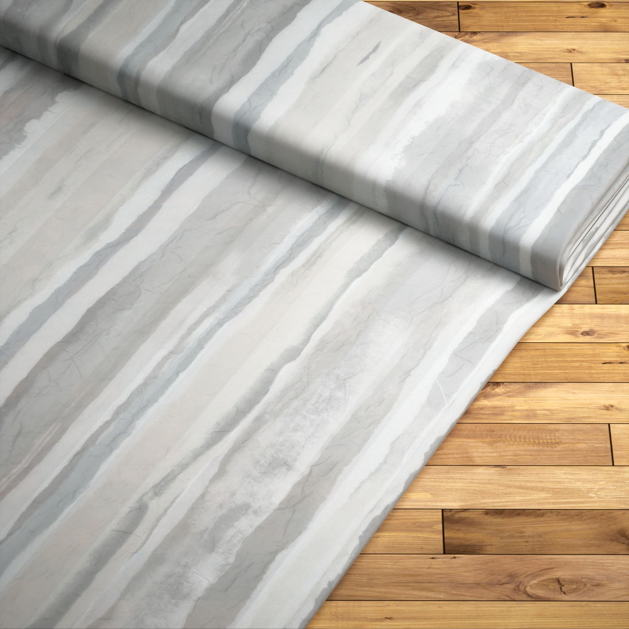 Die unterschiedlich hellen und dunklen Grautöne gestalten in Verbindung mit den Streifen in Weiß und Silber eine zeitlos schöne Deko mit edlem Charme. Locker, leicht und luftig wirkt der Stoff vor allem aufgrund der Transparenz und fügt sich in viele Räume spielend leicht ein. Zarte Pastelltöne und helles Holz sorgen weiterhin für eine harmonische Atmosphäre, die einladend und gemütlich wirkt.