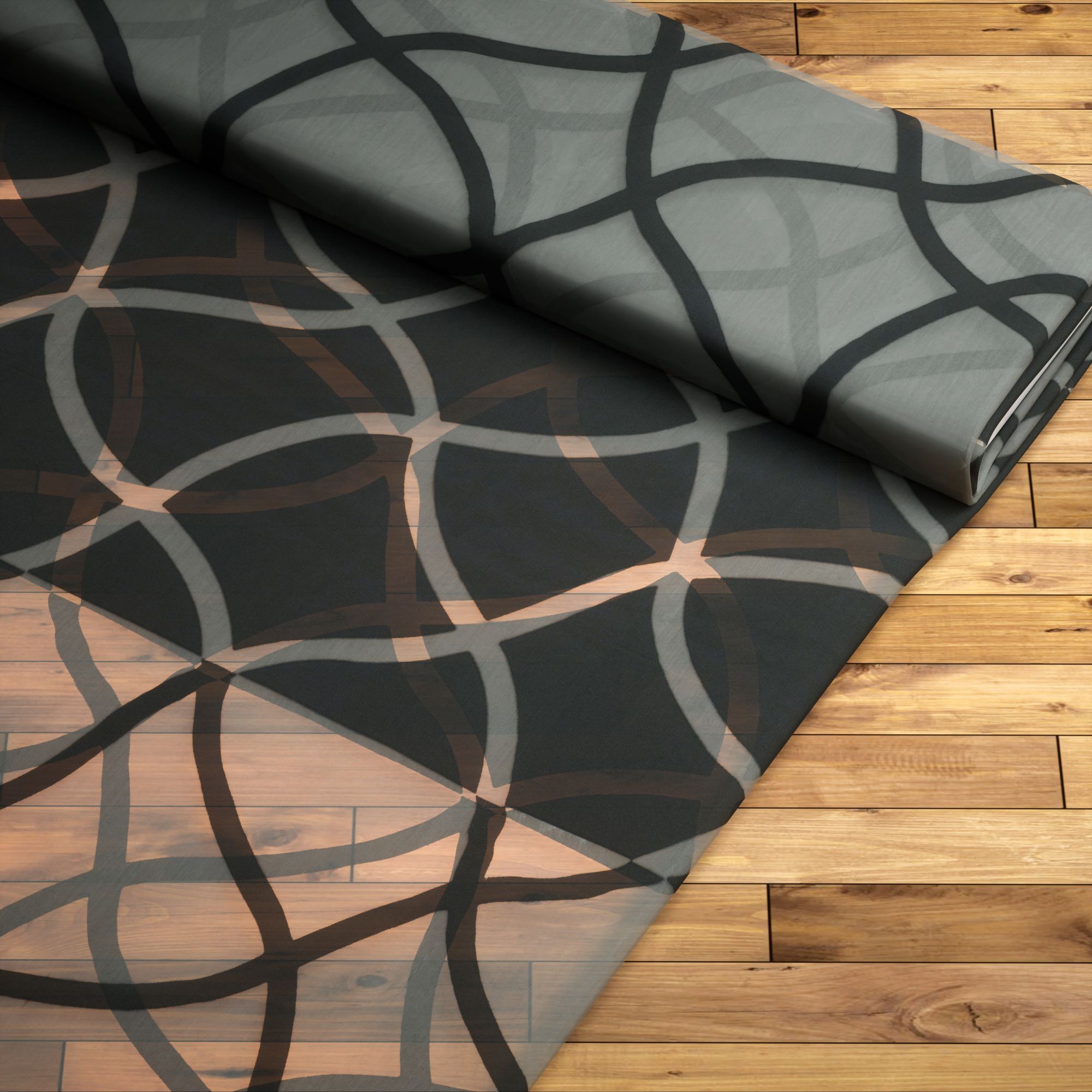 Hier ist der gesamte Stoff mit einem Muster in Ausbrenner-Optik gestaltet. Die halbtransparenten, geschwungenen Linien sind das entscheidende Designelement und nehmen die gesamte Oberfläche ein. Durch die Schnittpunkte gibt sich ein an ein geflochtenes Netz erinnerndes Design zu erkennen. Entfernt kann es auch an vom Wind bewegtes Wasser erinnern. Die unterschiedlichen Transparenzen lassen lebendige und ausdrucksstarke Effekte entstehen, die besonders bei einer Fensterdeko ihre ganze Wirkung entfalten. Nutzen Sie den Konfigurator, um beispielsweise ein Raffrollo oder einen Gardinenschal nach Maß individuell zusammenzustellen. Dabei können Sie auch Einfluss auf den oberen Abschluss, also die Aufhängung, nehmen. Als Tischdecke oder Tischläufer eingesetzt lässt dieses Modell die Oberfläche des Tisches bzw. die Optik des darunterliegenden Stoffes zum Vorschein kommen. Möchten Sie eigene kreative Ideen umsetzen, bestellen Sie die Meterware.