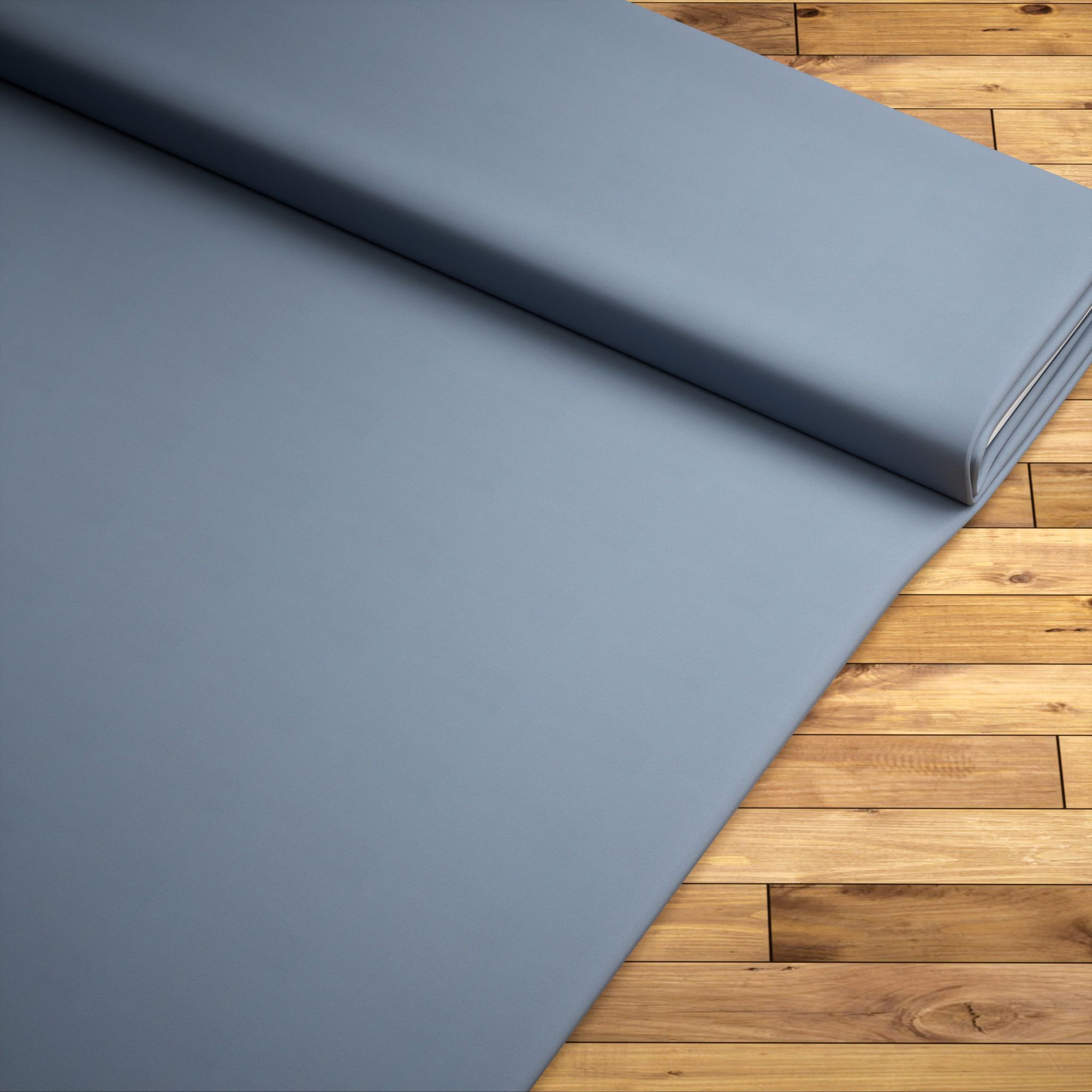 • Ein unkonfektionierter Verdunklungsstoff in blaugrau ohne Bleiband