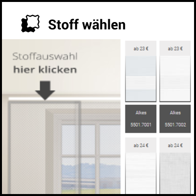 Wählen Sie den Stoff aus indem Sie auf die einzelnen Paneele in der Animation klicken.