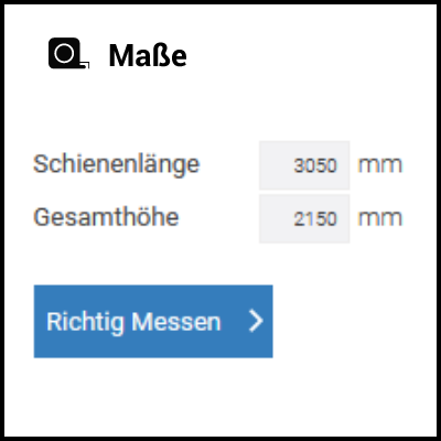Geben Sie Schienenlänge und Gesamthöhe an (Messanleitungen stehen digital zur Verfügung)