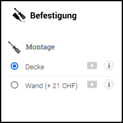 Als Befestigung stehen folgende Optionen zur Verfügung: