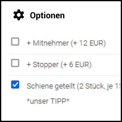 Als Optionen können noch Stopper und Mitnehmer zur leichteren Bedienung hinzugefügt werden.