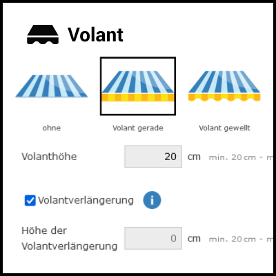 Optional: Volantverlängerung zwischen 20 und 150 cm