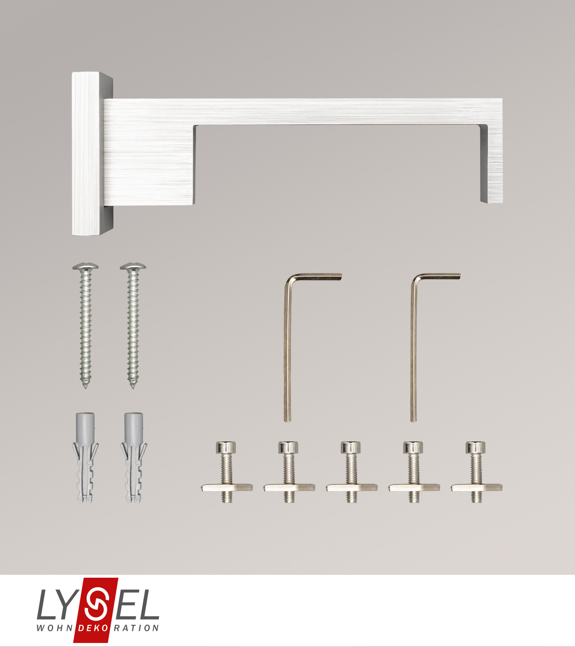 Dieser Multiträger in eckiger Form besteht aus gebürstetem Aluminium und eignet sich für bis zu fünf Coral Gardinenstangen. Das Befestigungsmaterial für die Schraubmontage an der Wand ist im Lieferumfang ebenfalls enthalten. Der Wandabstand der Gardinenstange beträgt 14,5 cm. Die Gardinenstangen werden mit kleinen Schrauben am Träger befestigt.