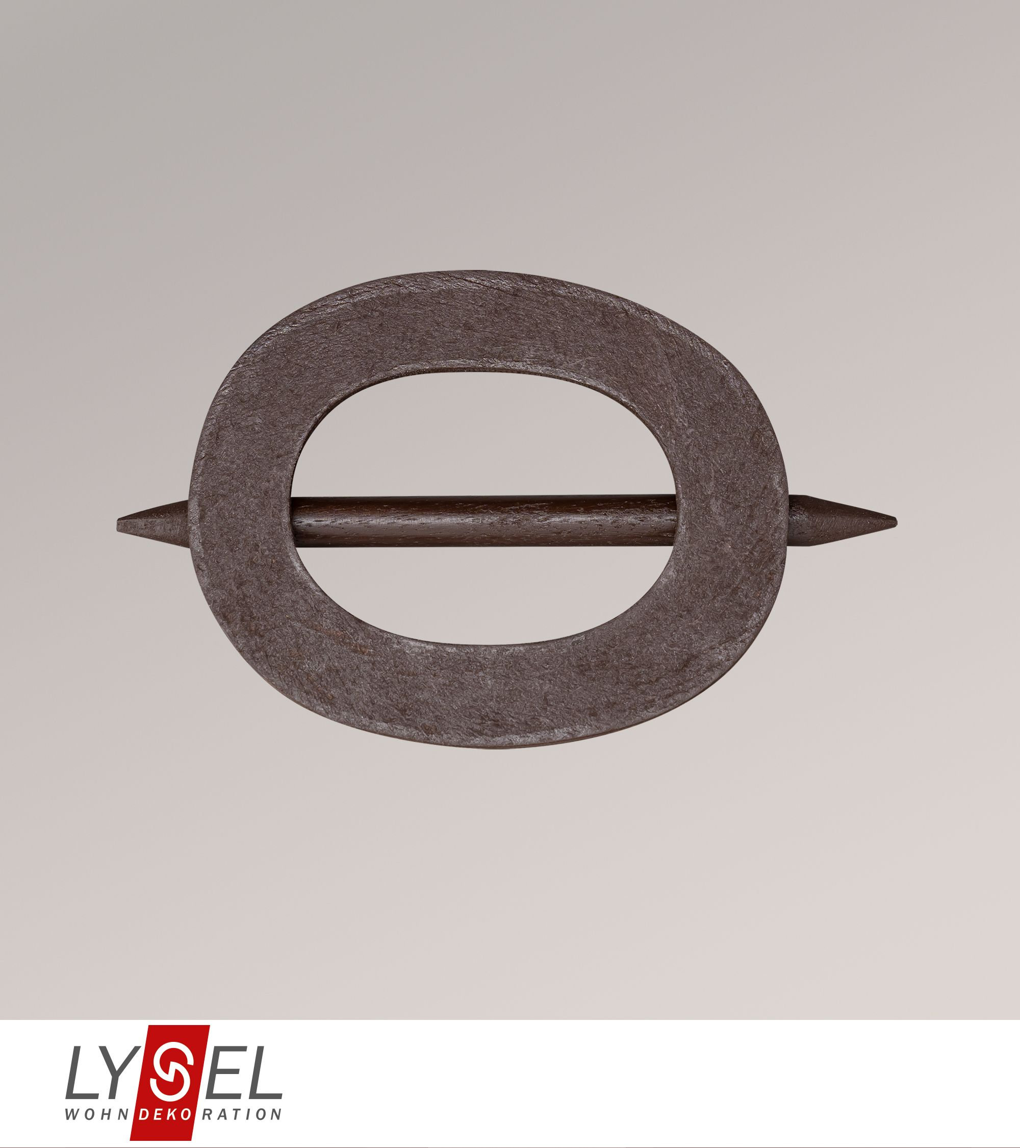 Dieser ellipsenförmige Deko-Raffhalter aus Holz kommt ausgesprochen rustikal daher. Der breite Rand und der im Lieferumfang enthaltene Stab zur Befestigung unterstreichen die derbe Optik. In ein Interieur im Industrie-Stil passt dieses Accessoire durch seine raue, unverfälschte Ausstrahlung besonders gut. Zudem vermittelt das Naturmaterial Wärme und Gemütlichkeit, lässt sich mit anderen Materialien wie Stein, Schiefer, Beton und Glas toll kombinieren. Mit dem Raffhalter können Sie Stoffe zusammenfassen und an einer beliebigen Stelle am Fenster dekorieren.